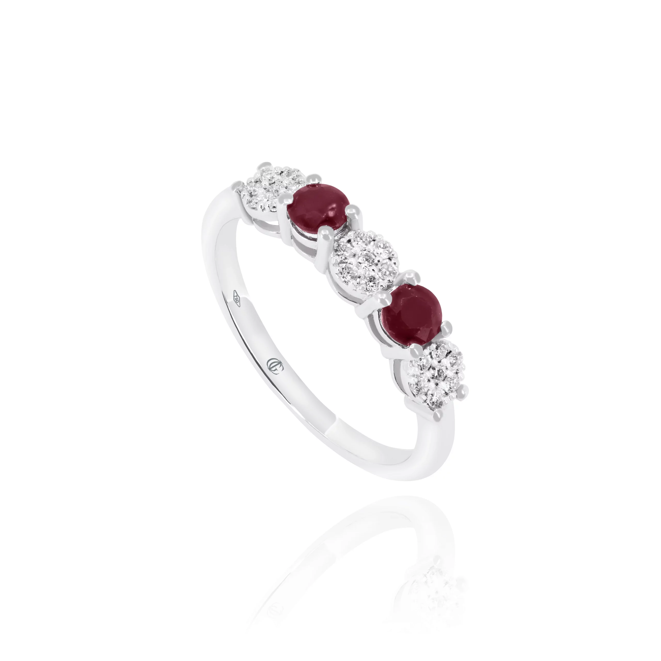 Anello Veretta con Rubini e Diamanti in oro bianco 18kt: