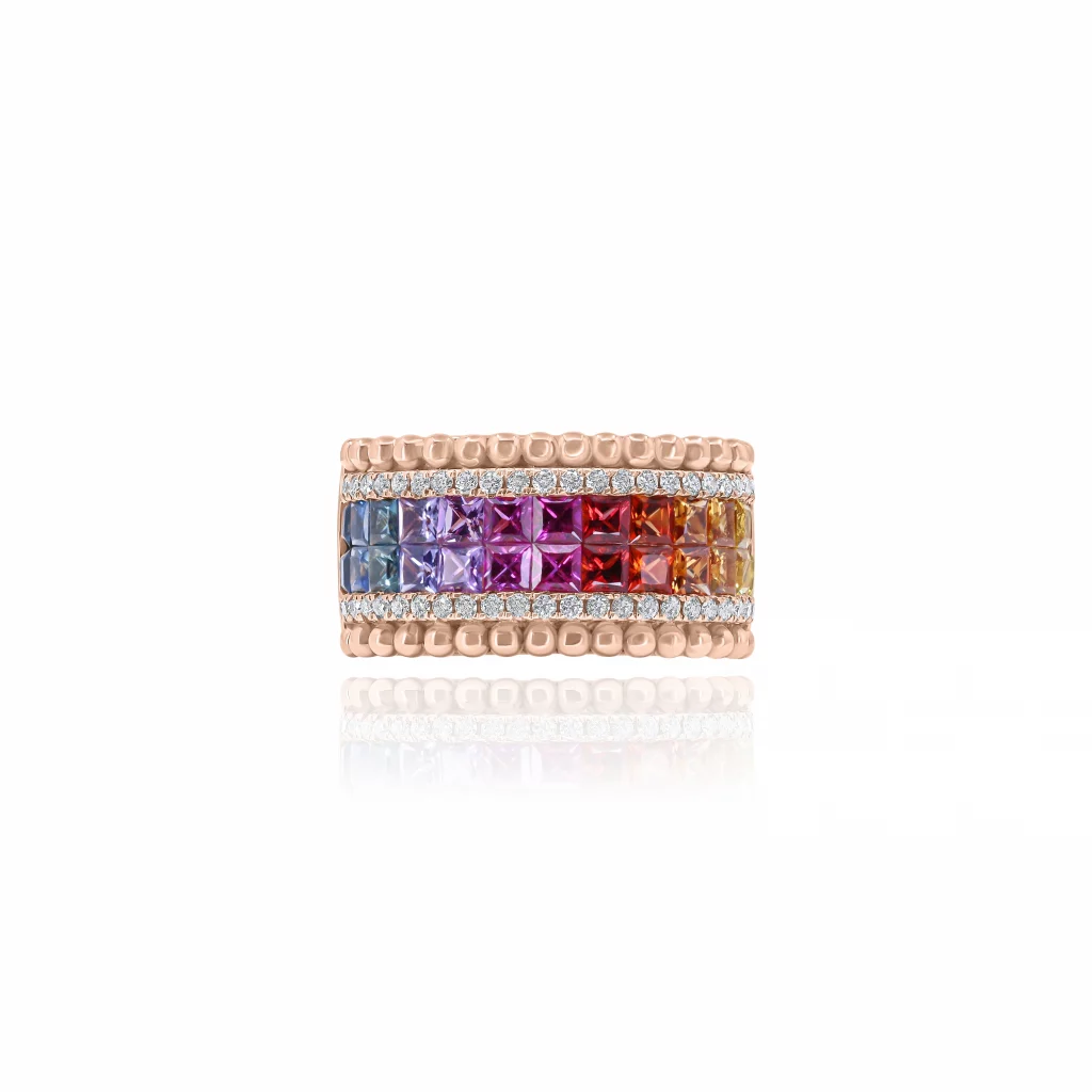 Anello con Zaffiri Colorati e Diamanti in oro rosa18 kt: