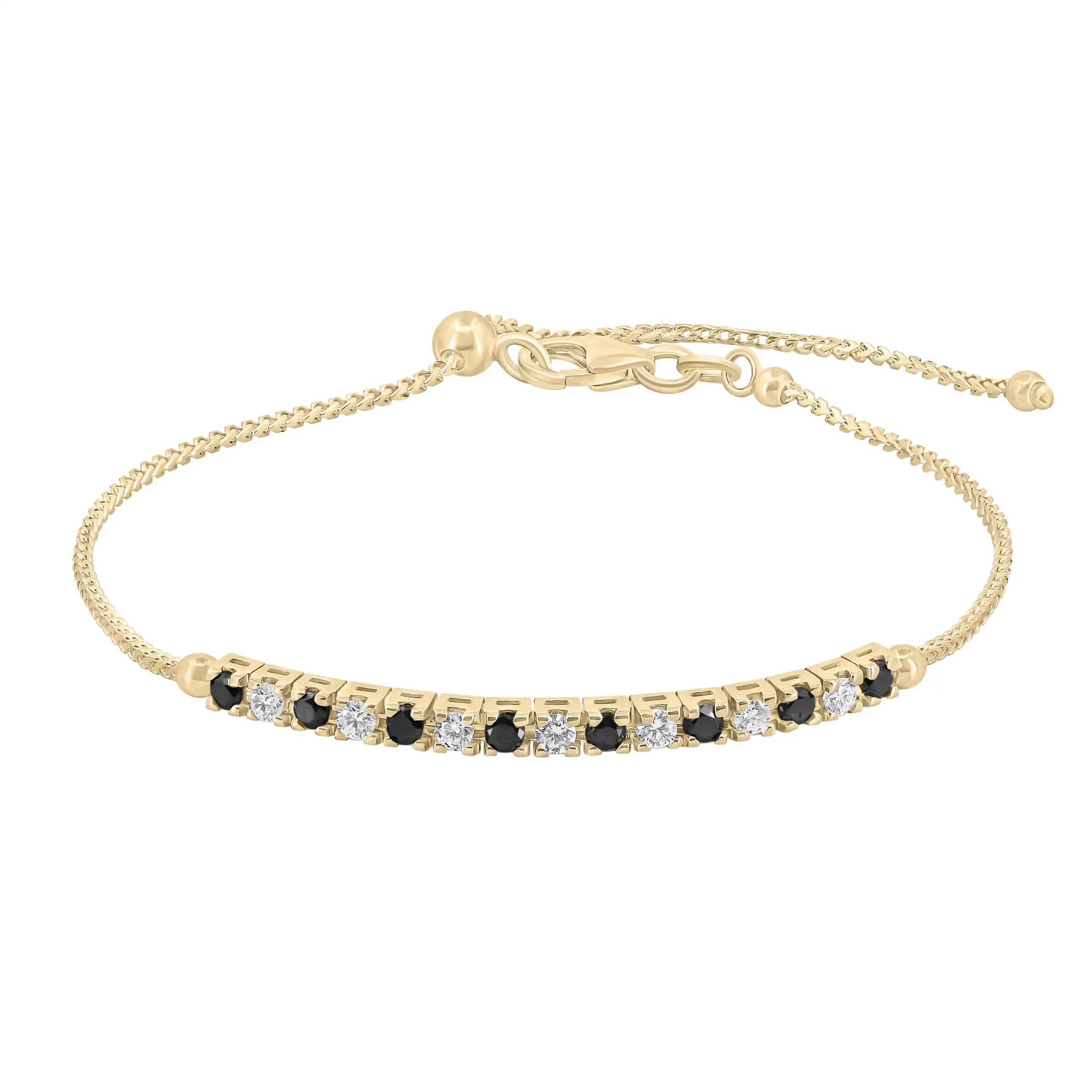 Bracciale Mezzo Tennis Regolabile con Diamanti Bianchi e Neri in oro giallo 18kt: