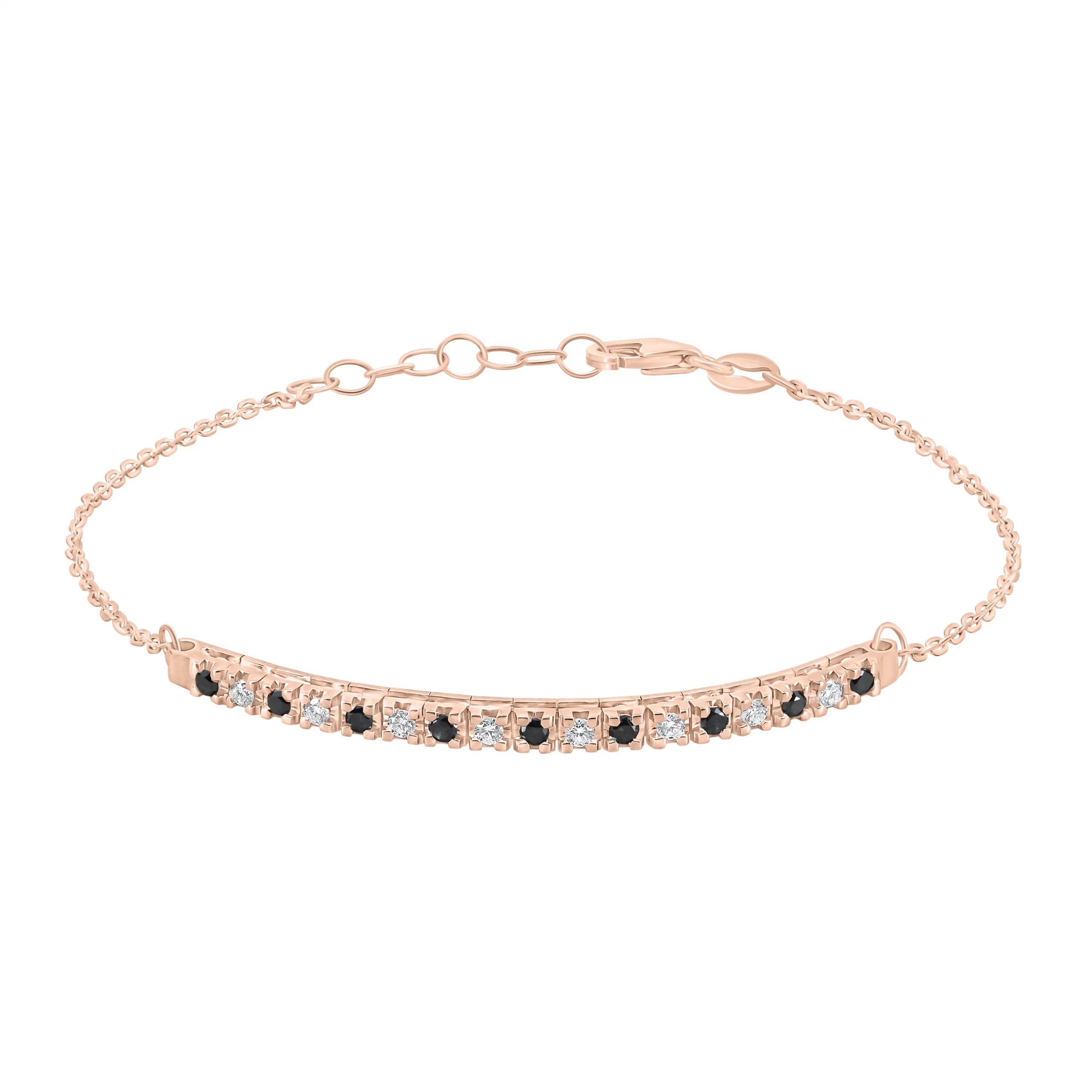 Bracciale Mezzo Tennis Regolabile con Diamanti Bianchi e Neri in oro rosa 18kt, disponibile in diverse carature: