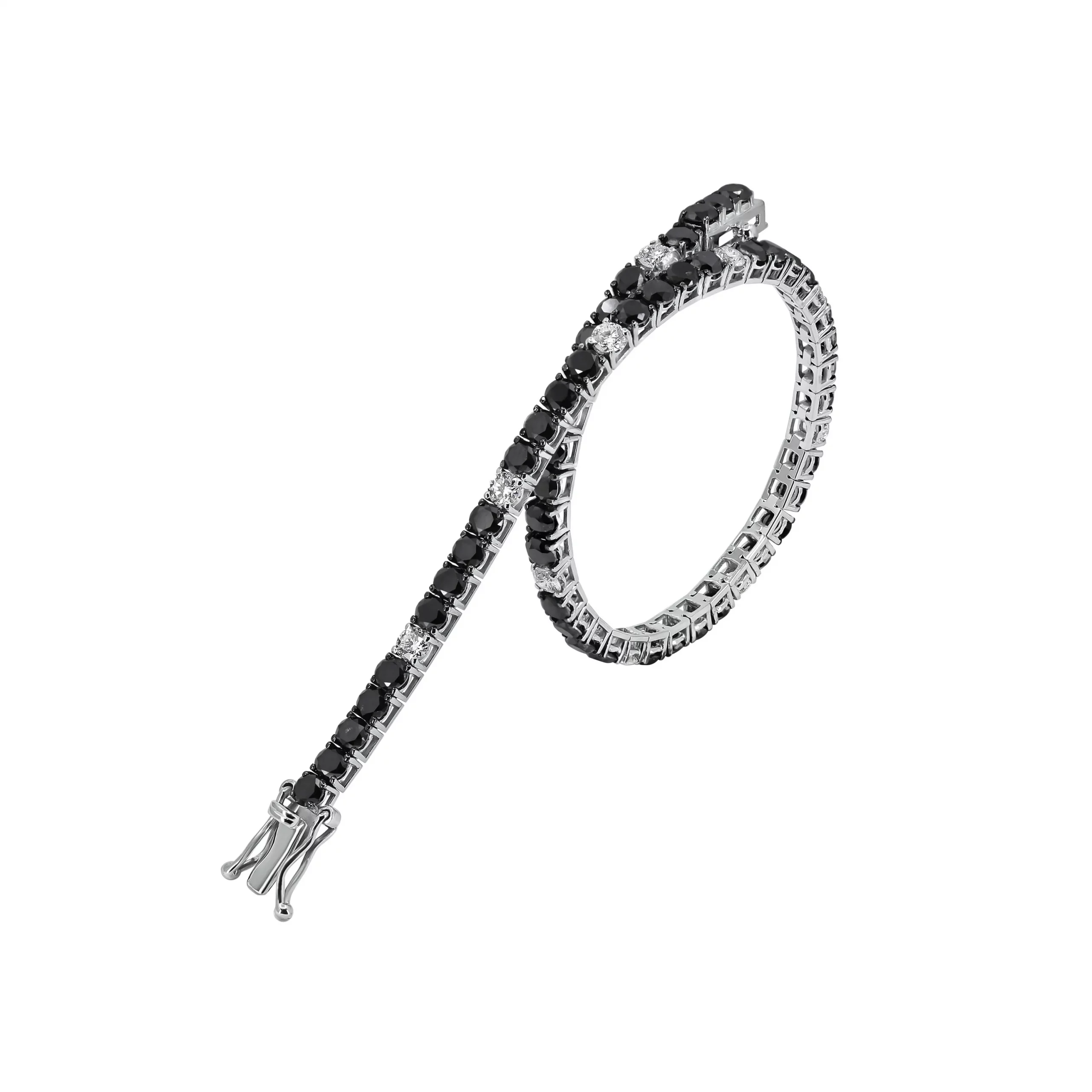 Bracciale Tennis con Diamanti Bianchi e Neri in oro bianco 18kt.