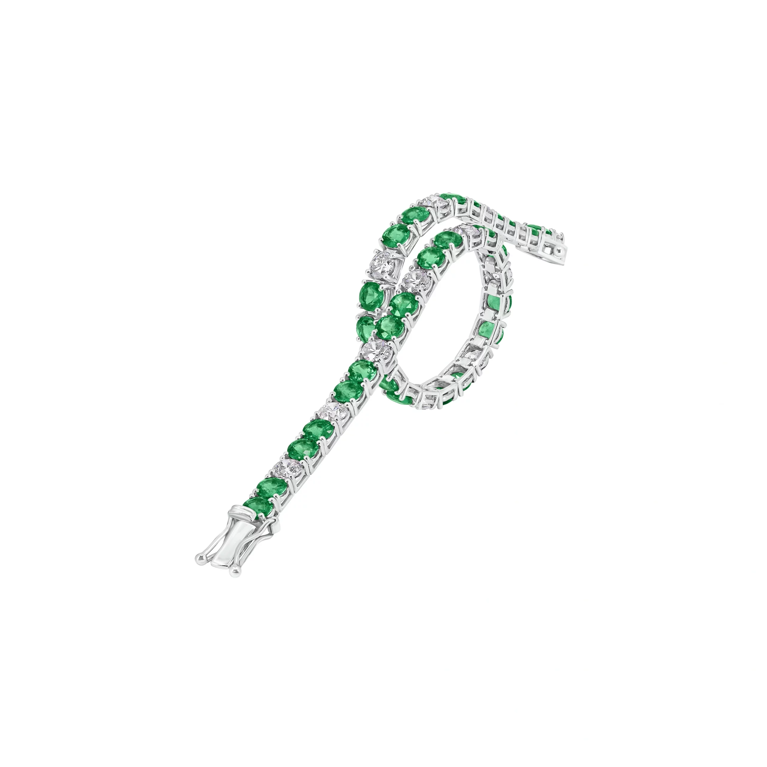 Bracciale Tennis con Smeraldi Zambia e Diamanti in oro bianco 18kt.