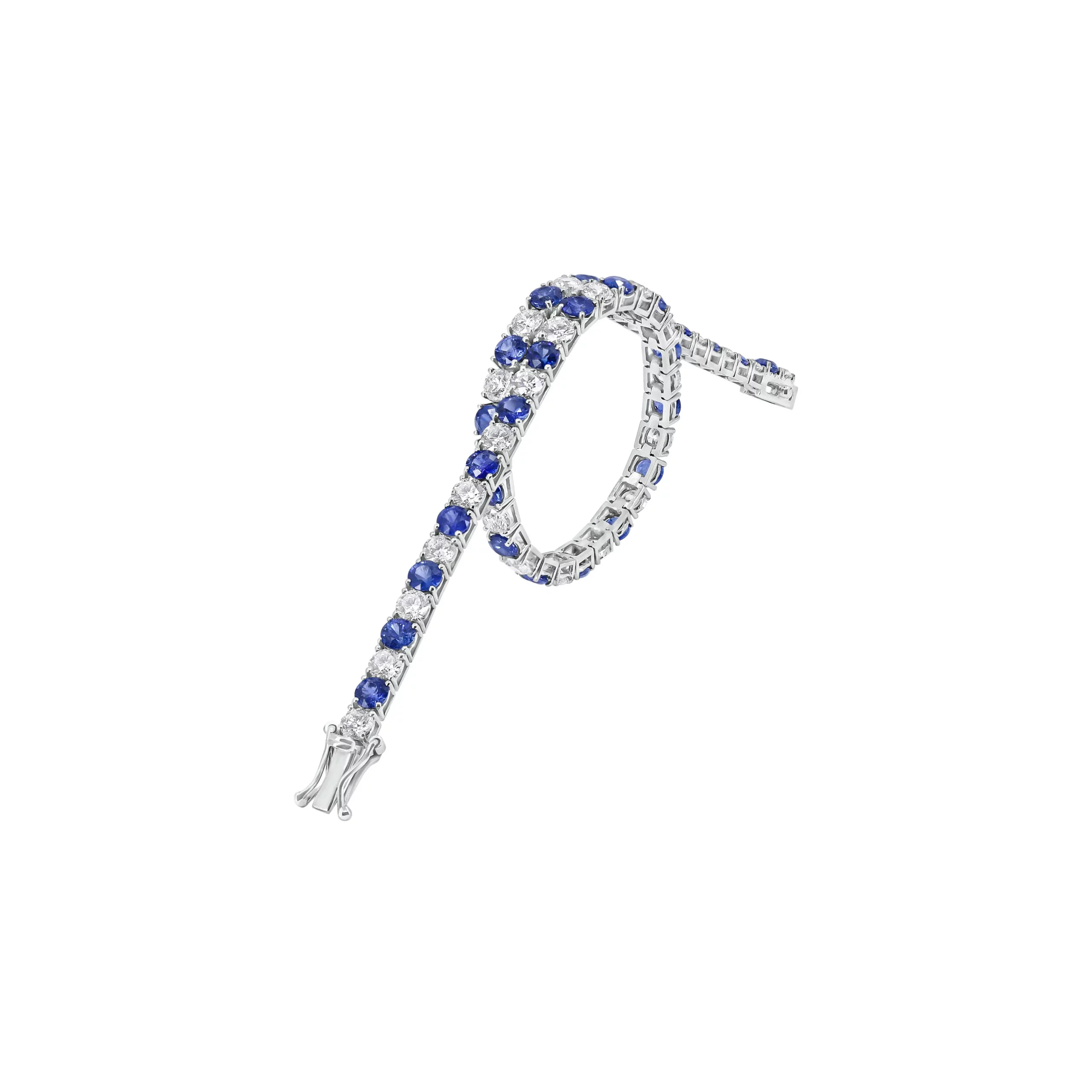 Bracciale Tennis con Zaffiri e Diamanti in oro bianco 18kt, disponibile in diverse carature: