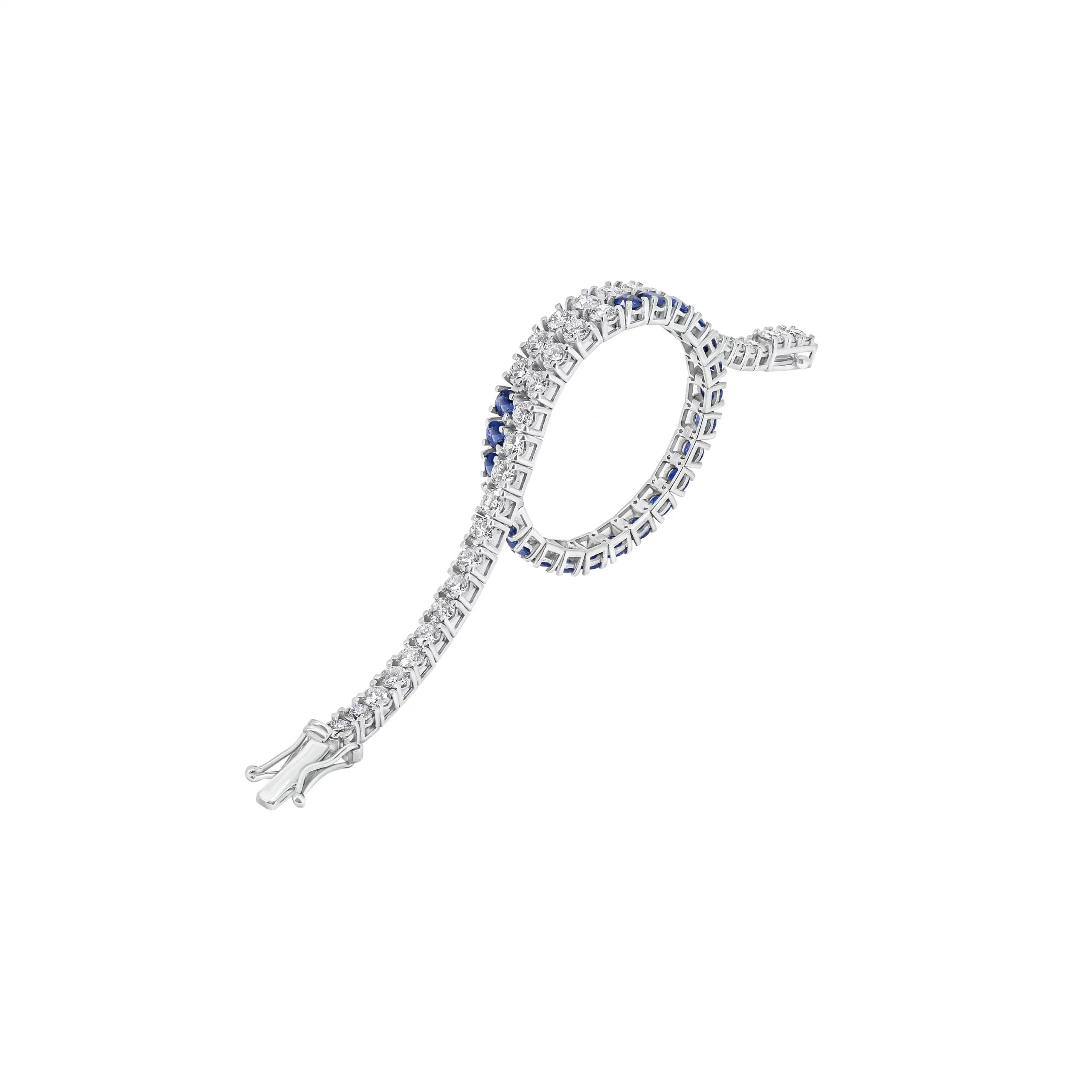 Bracciale Tennis con Zaffiri e Diamanti in oro bianco 18kt, disponibile in diverse carature:
