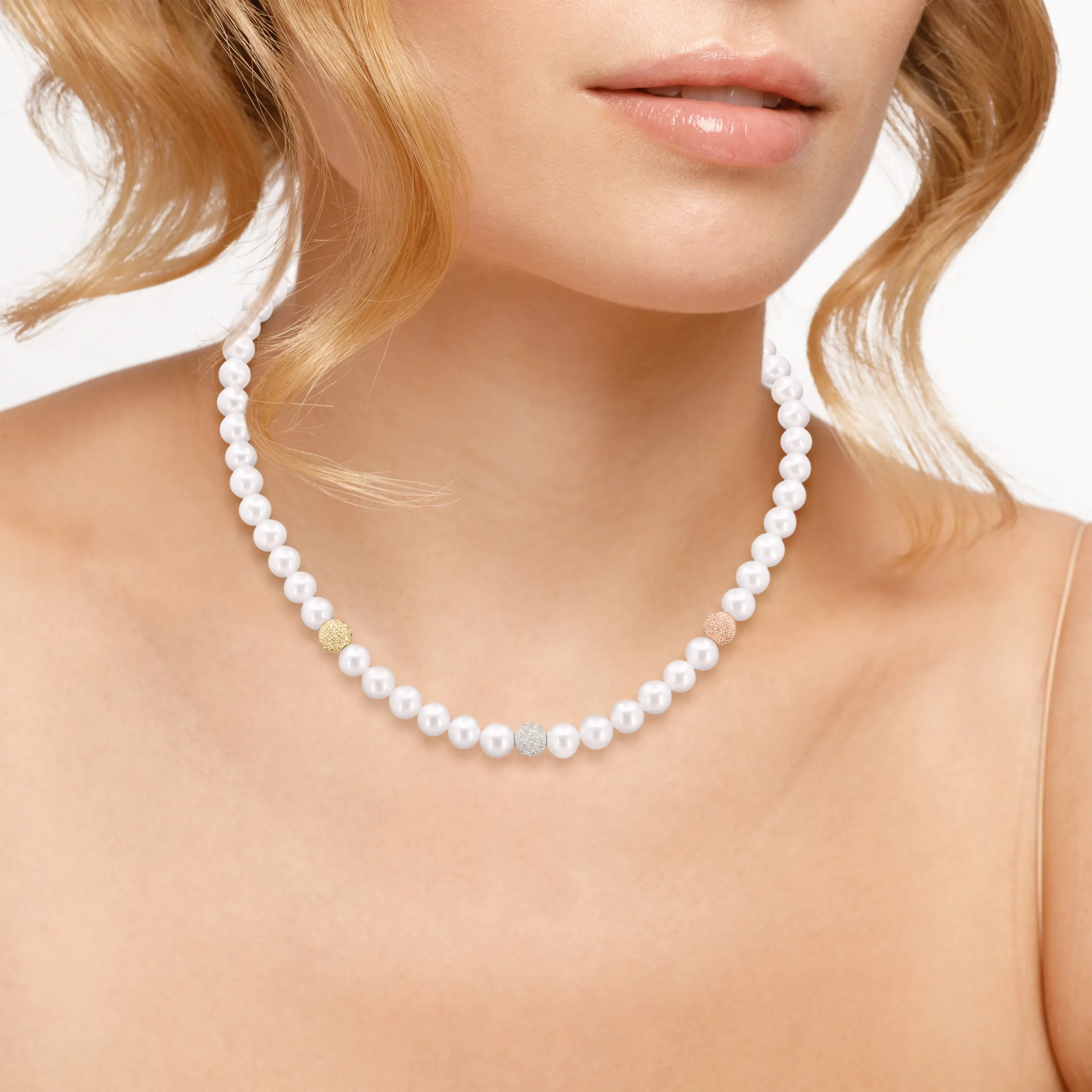 Girocollo Perle di Acqua Dolce con sfere, in oro bianco 18kt: