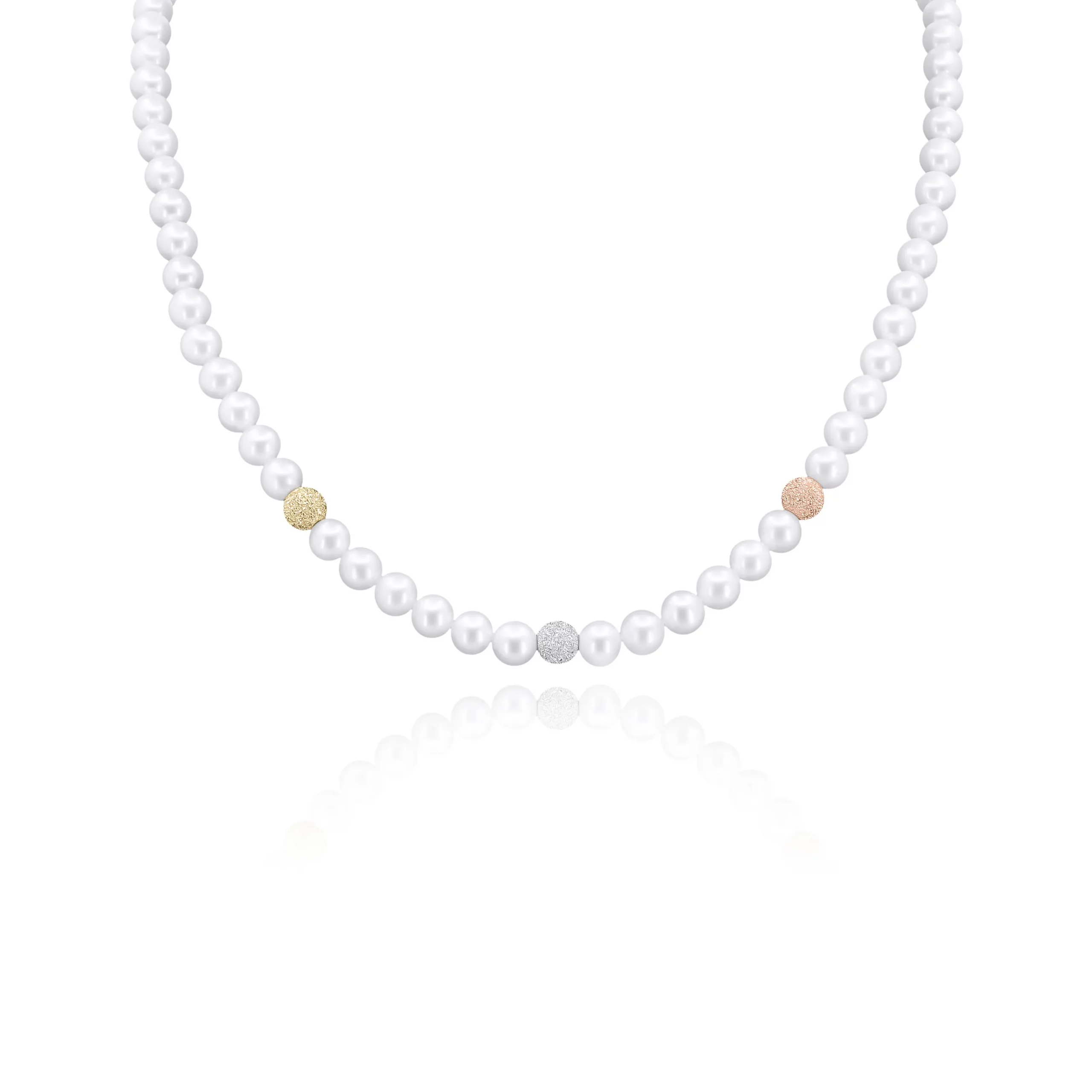 Girocollo Perle di Acqua Dolce con sfere, in oro bianco 18kt.