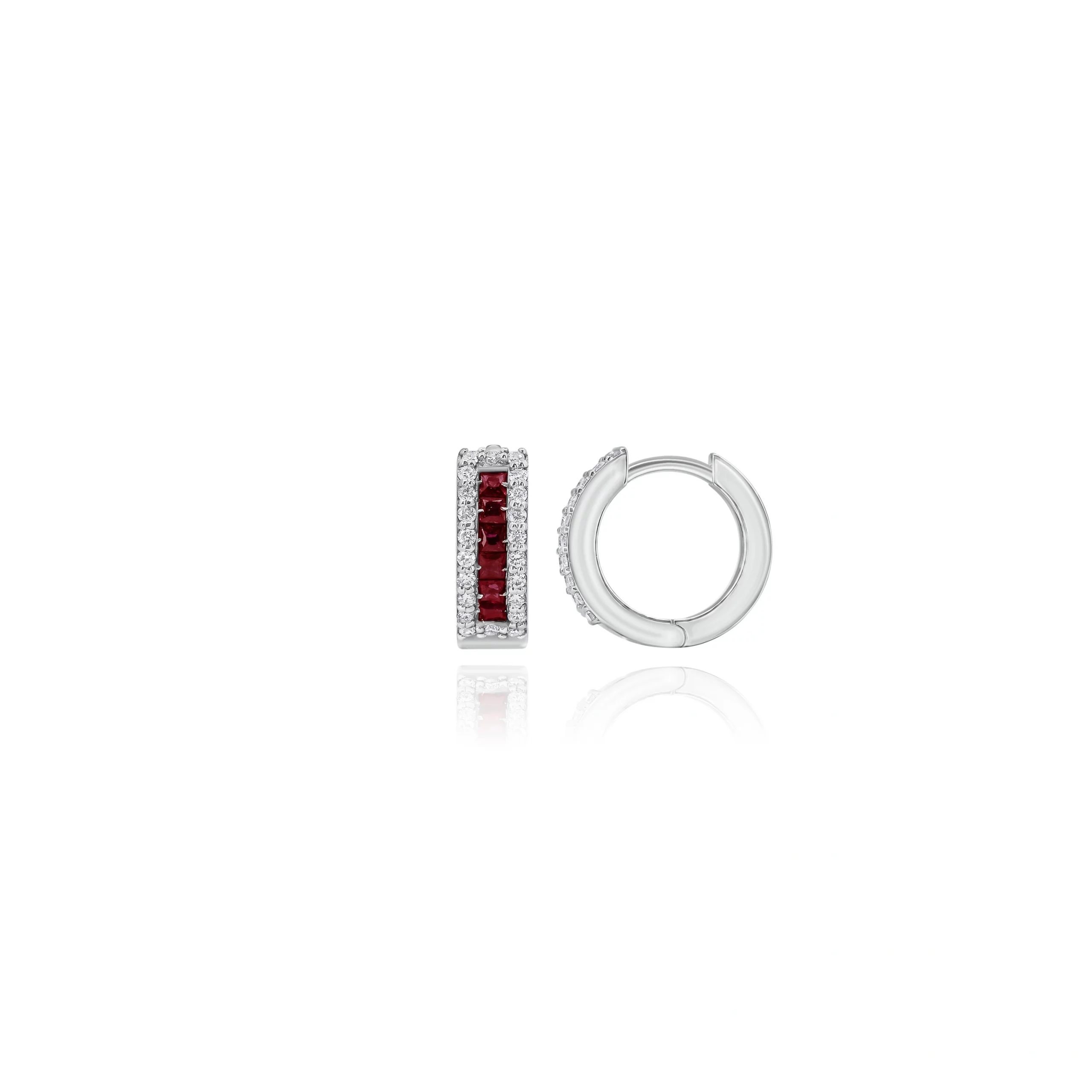 Orecchini a Cerchio con Rubini Taglio Princess e Diamanti in oro bianco 18 kt.