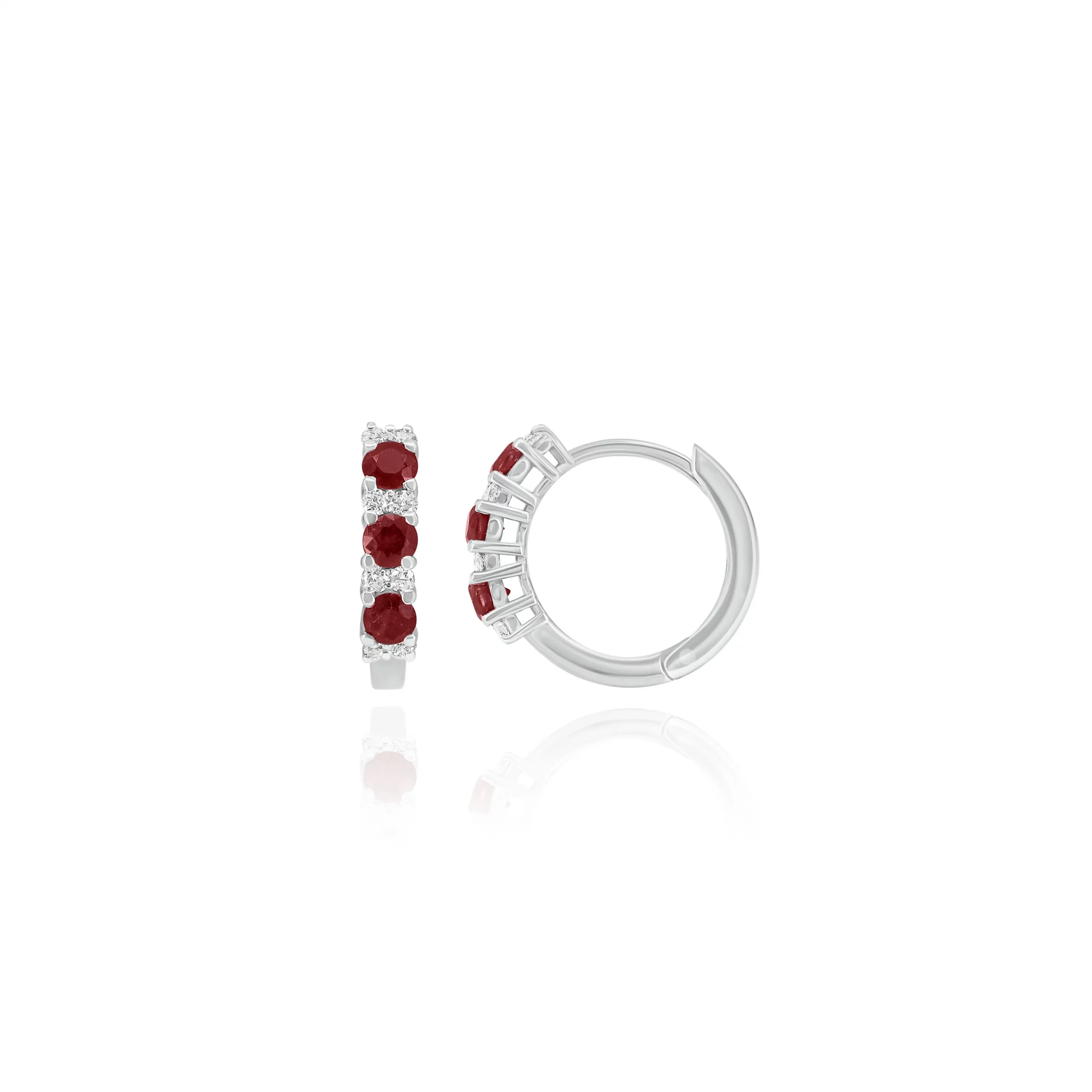 Orecchini a Cerchio con Rubini e Diamanti in oro bianco 18 kt: