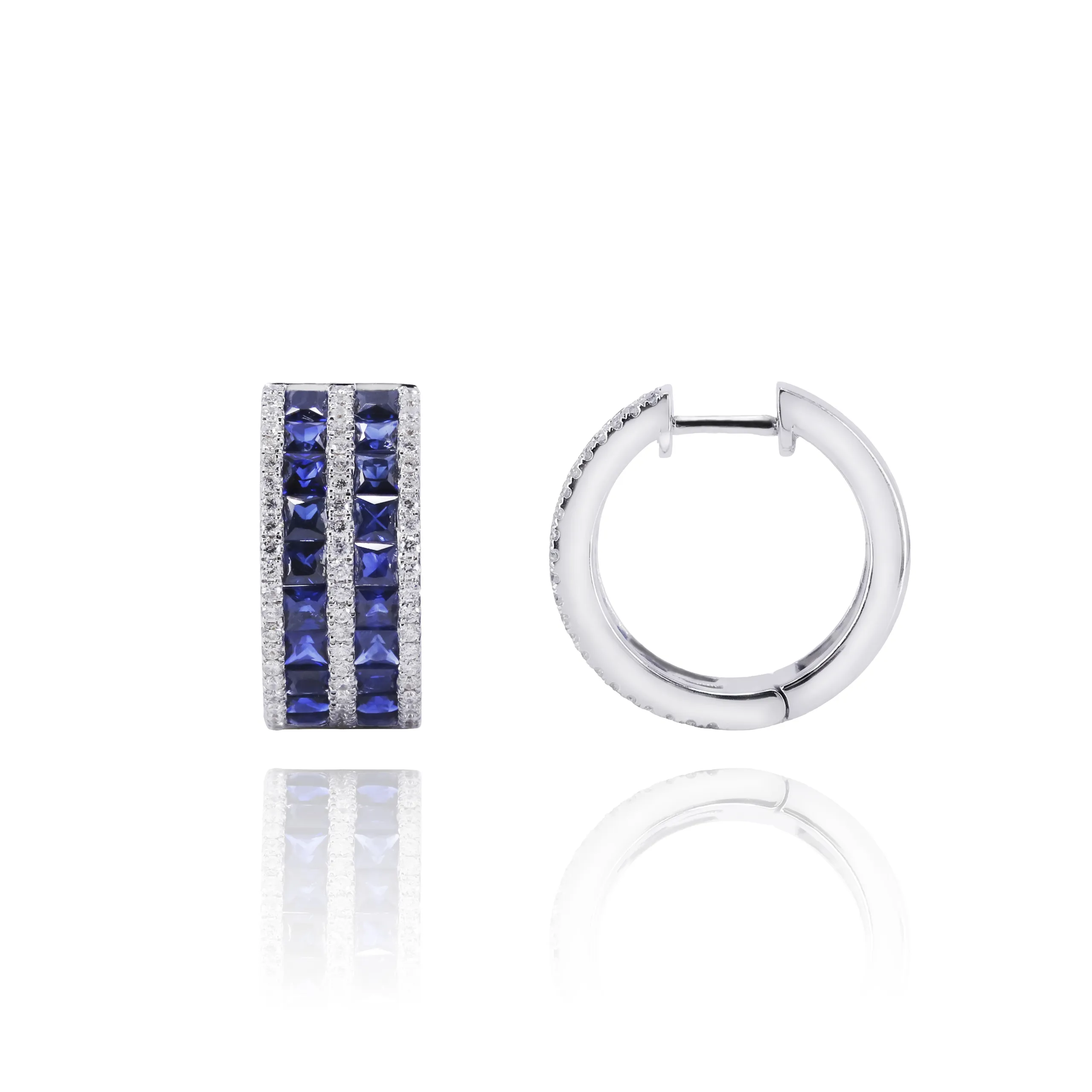 Orecchini a Cerchio con Zaffiri e Diamanti in oro bianco 18kt: