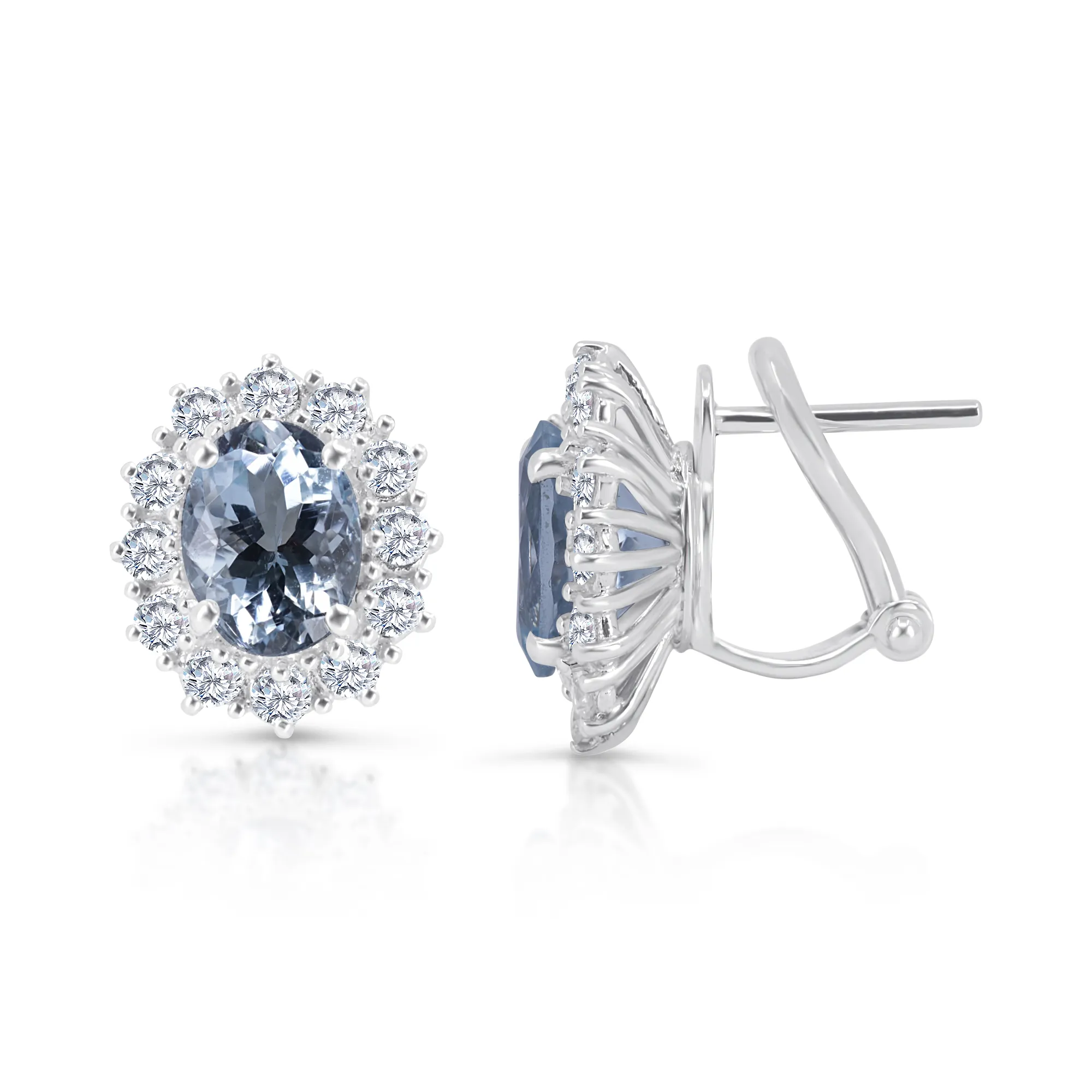 Orecchini con Acquamarina e Diamanti in oro bianco 18kt.