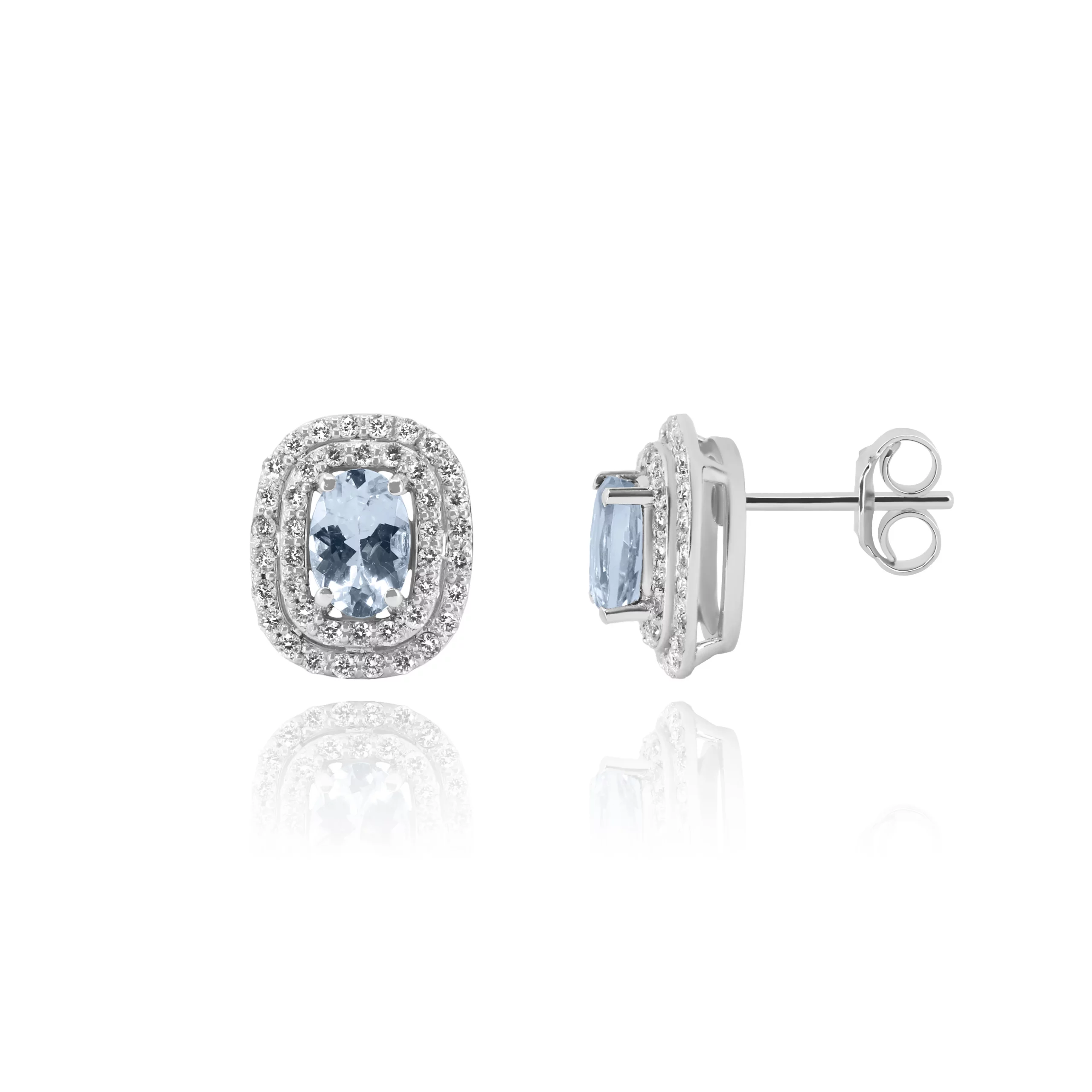 Orecchini con Acquamarina e Diamanti in oro bianco 18kt:
