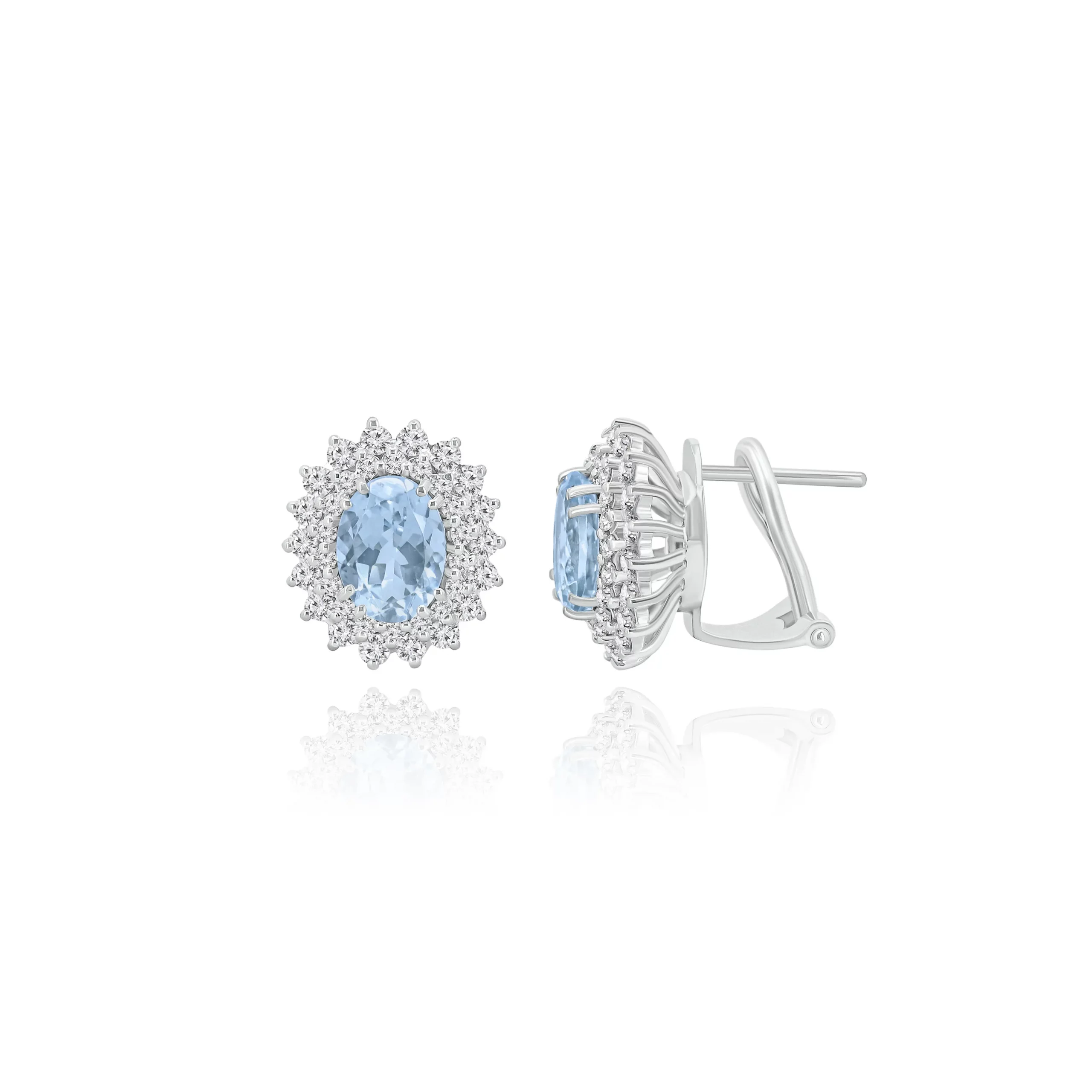Orecchini con Acquamarina e Diamanti in oro bianco 18kt.