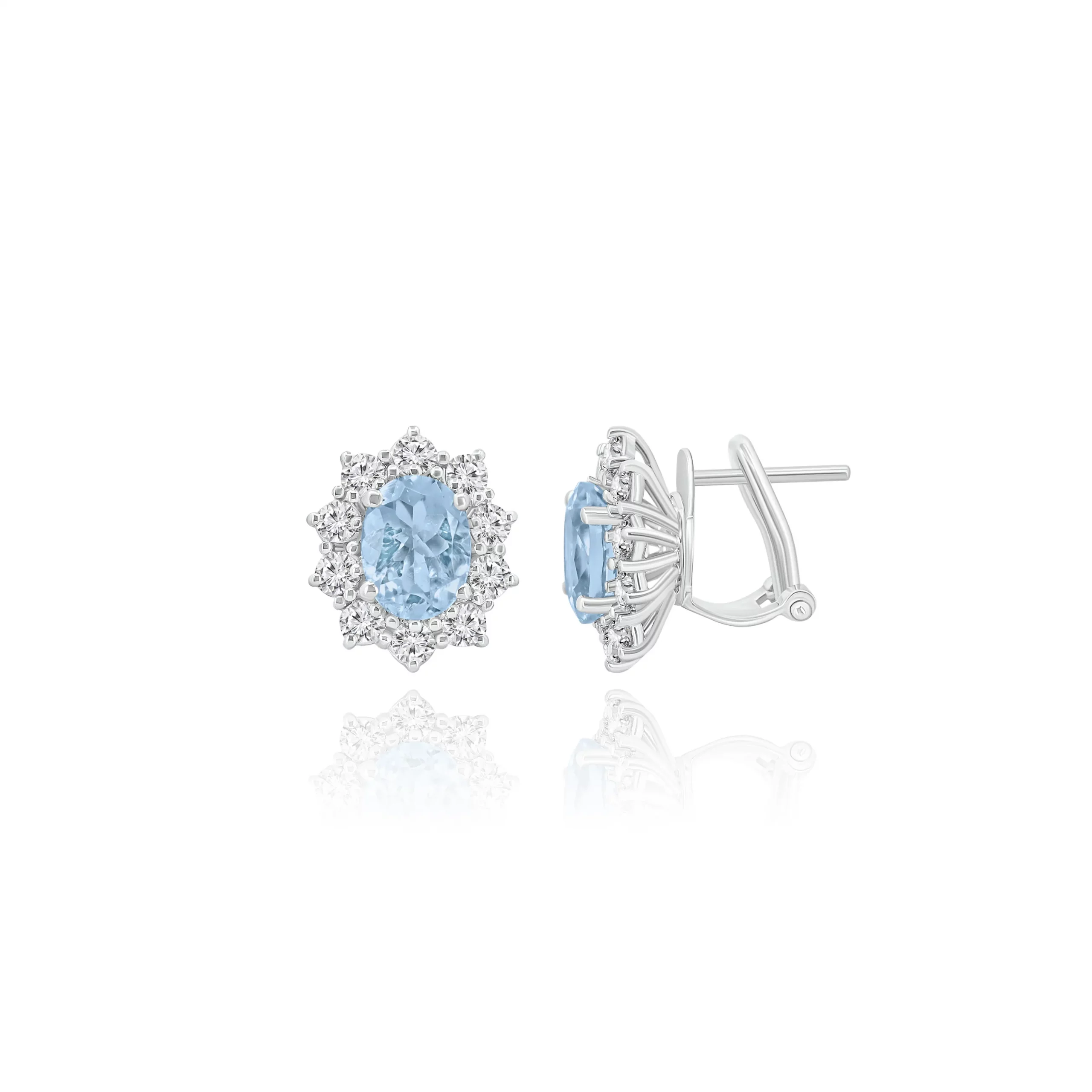 Orecchini con Acquamarina e Diamanti in oro bianco 18kt.