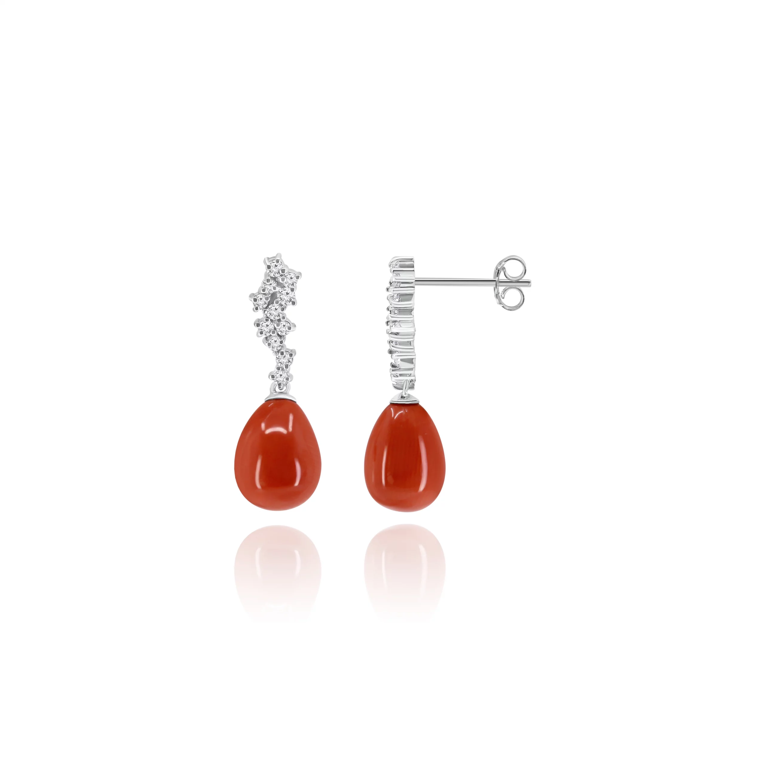 Orecchini con Coralli e Diamanti in oro bianco 18kt: