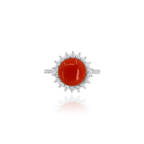 Orecchini con Coralli e Diamanti in oro bianco 18kt: