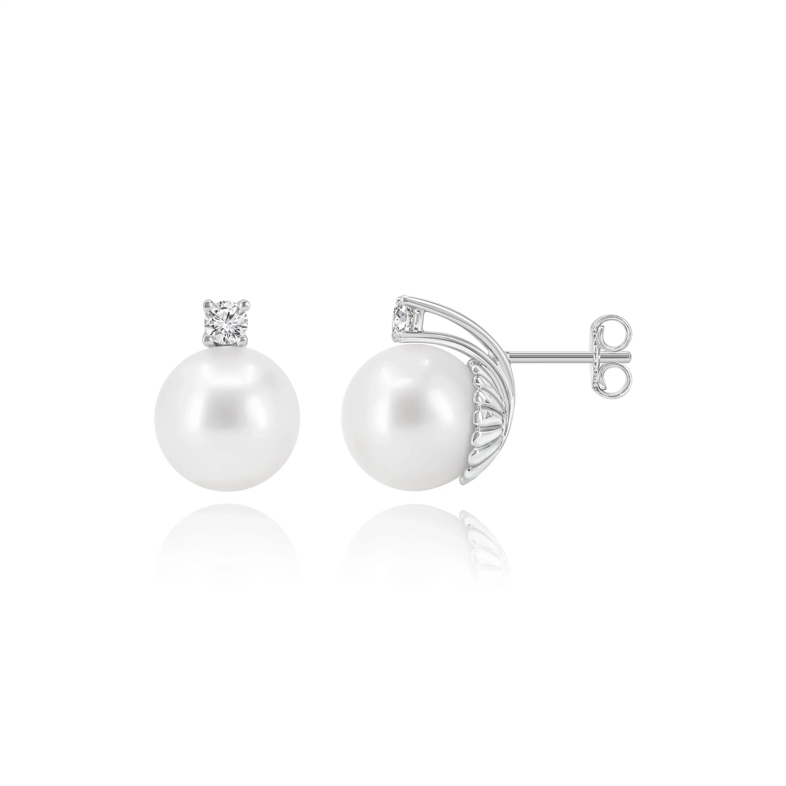 Orecchini con Perle Australiane e Diamanti in oro bianco 18kt.