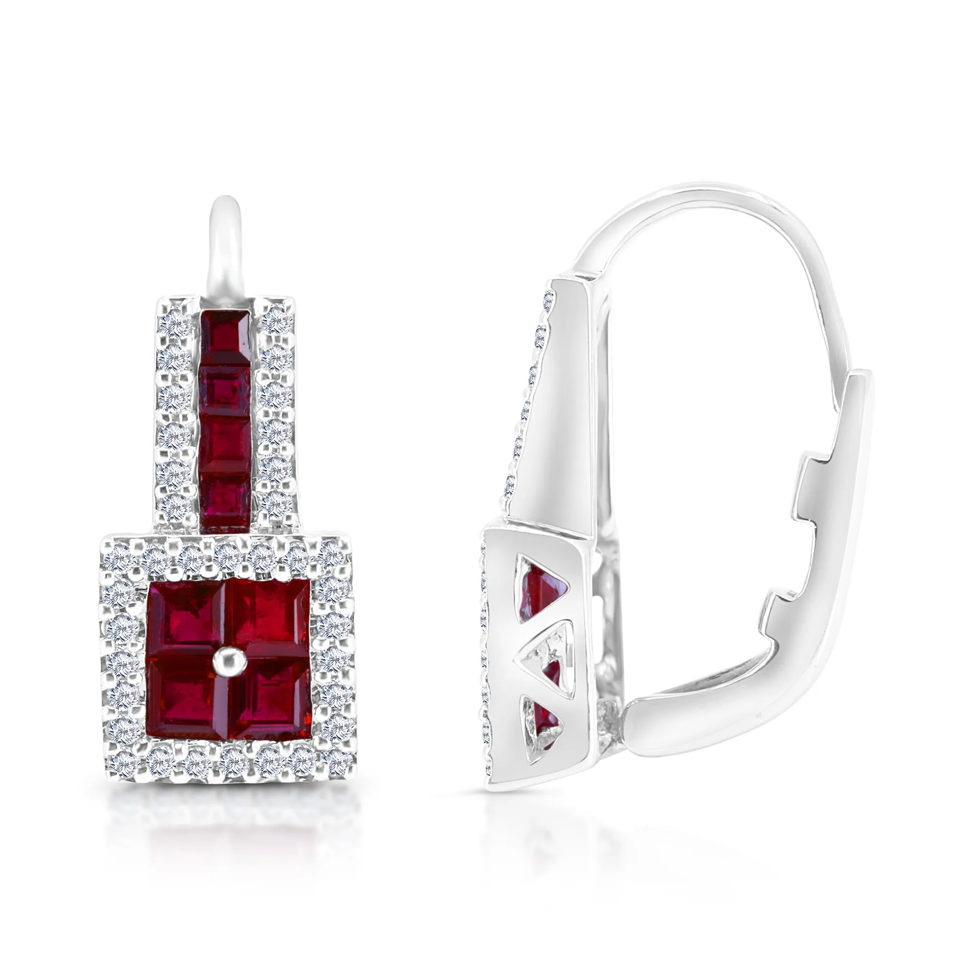Orecchini con Rubini Taglio Princess e Diamanti in oro bianco 18 kt: