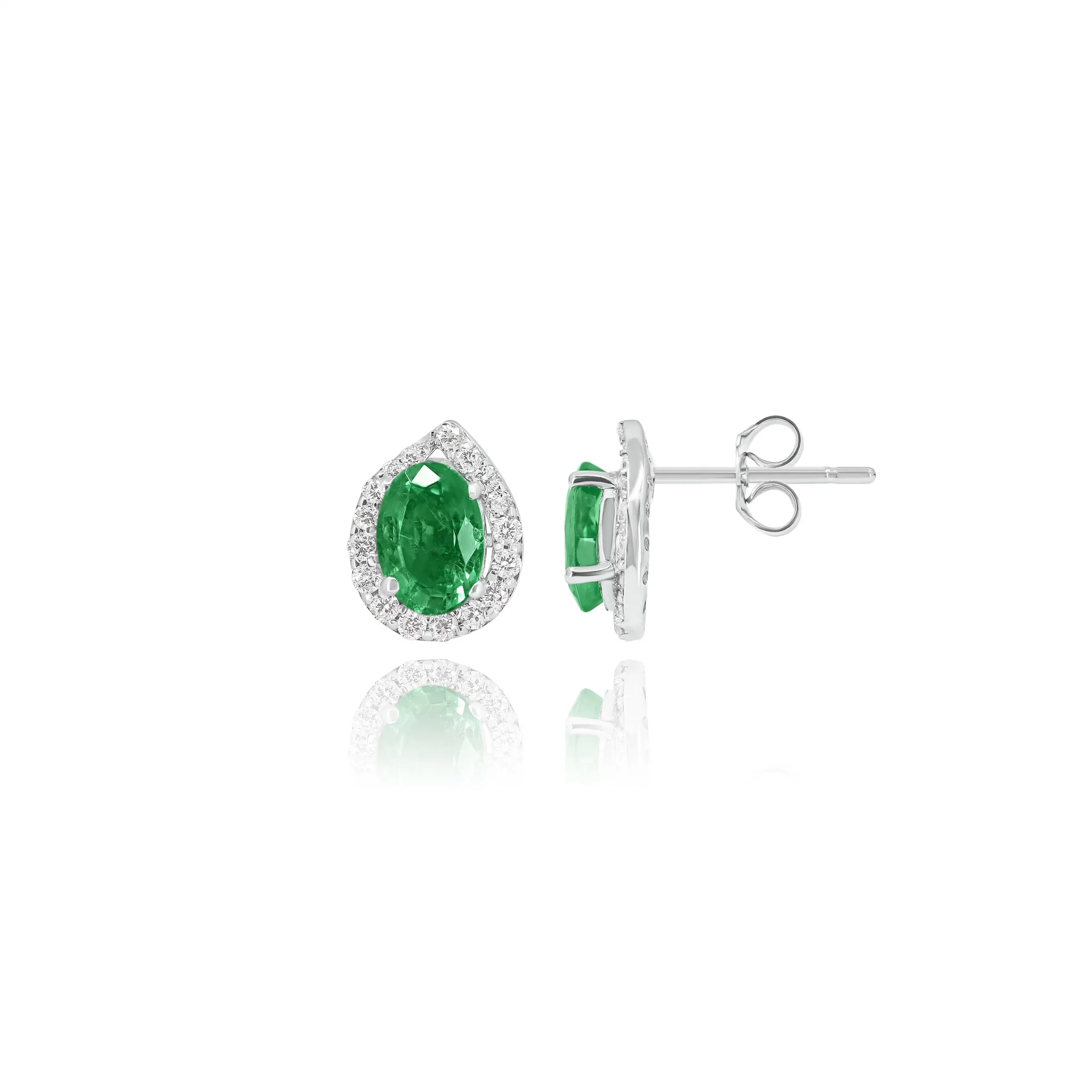 Orecchini con Smeraldi Zambia e Diamanti in oro bianco 18 kt, appartenenti all’esclusiva collezione IGDC, disponibili in diverse carature:
