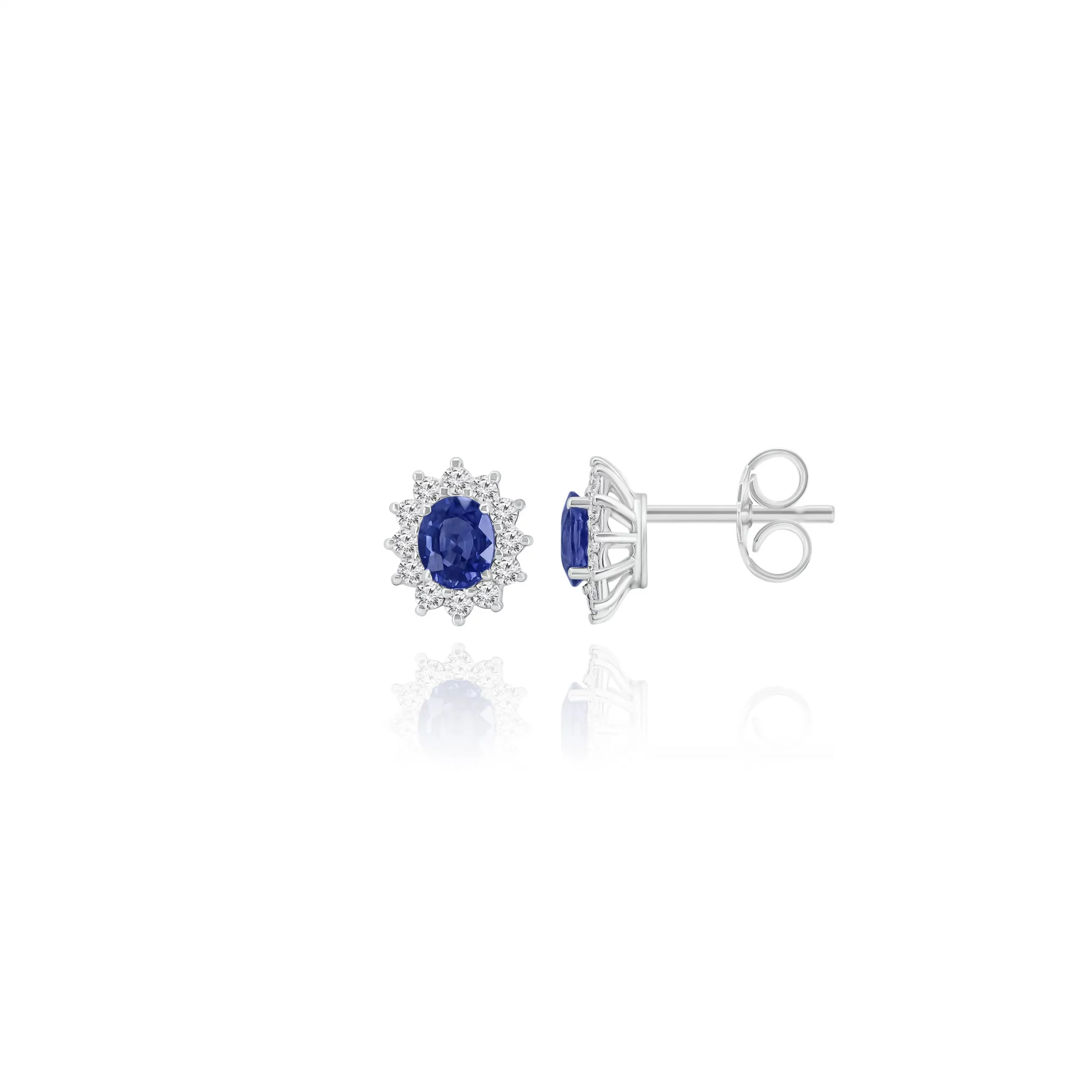 Orecchini con Zaffiri e Diamanti in oro bianco 18 kt: