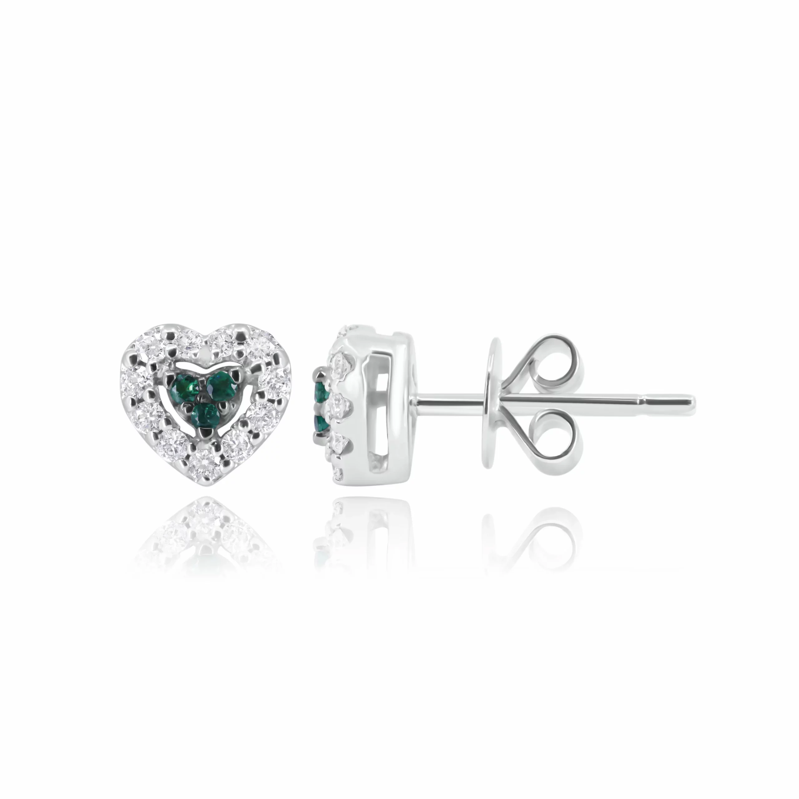 Orecchini Cuore con Smeraldi e Diamanti in oro bianco 18 kt: