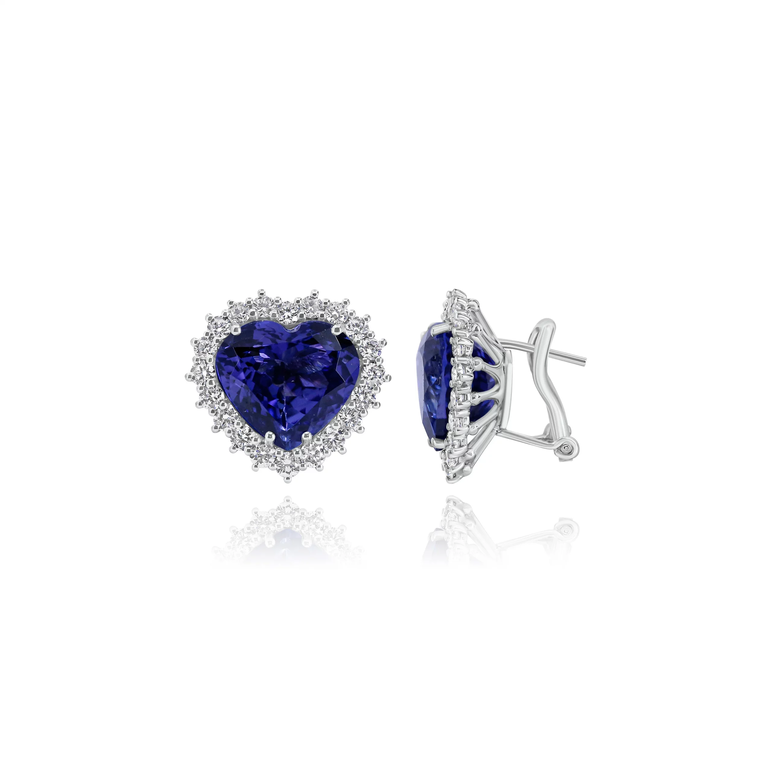 Orecchini con Tanzaniti Cuore e Diamanti in oro bianco 18 kt, Appartenenti all’esclusiva collezione IGDC.