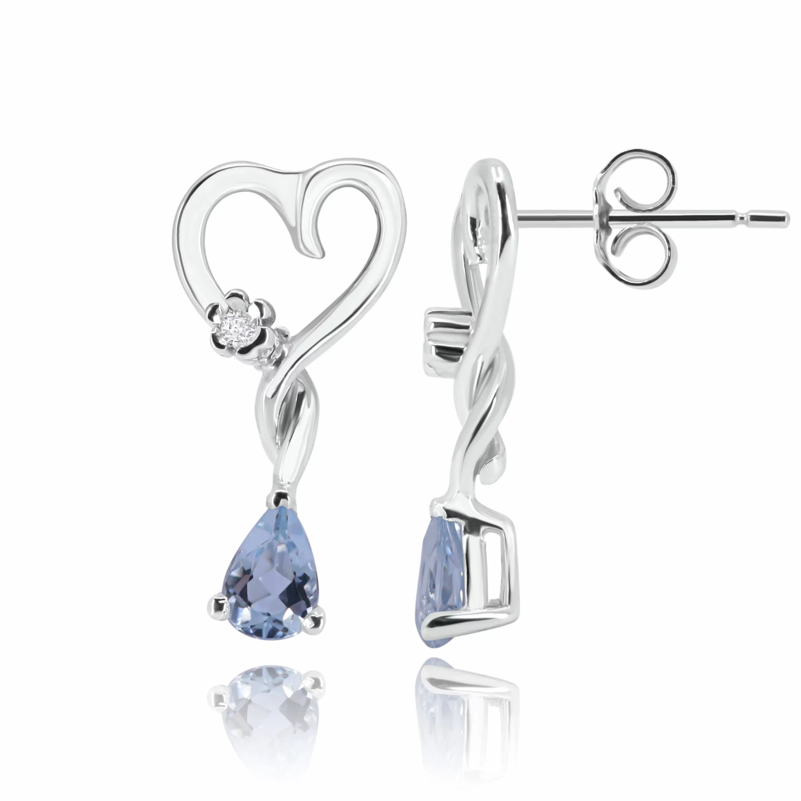 Orecchini Stilizzati a Cuore con Acquamarina e Diamanti in oro bianco 18kt: