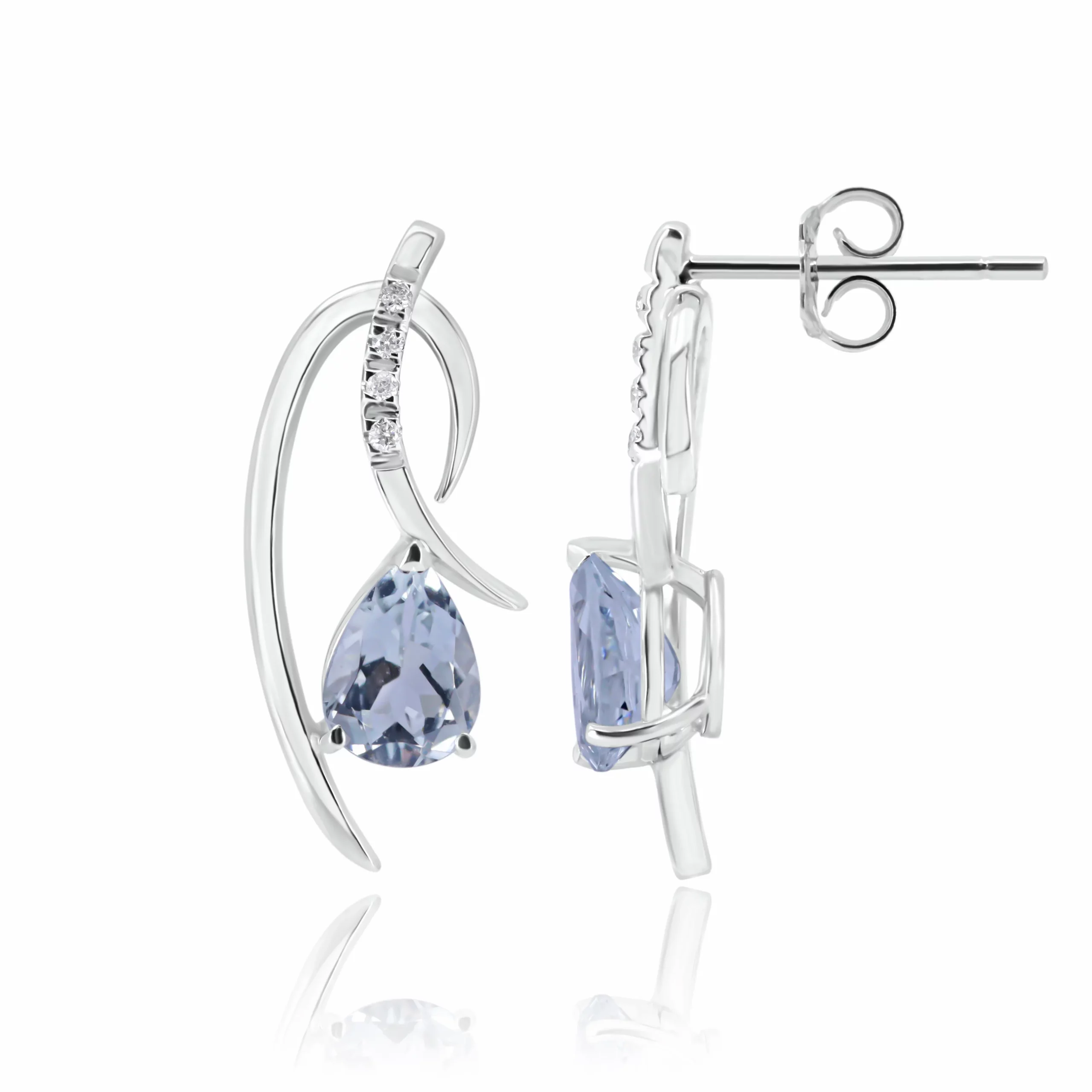 Orecchini Stilizzati con Acquamarina e Diamanti in oro bianco 18kt: