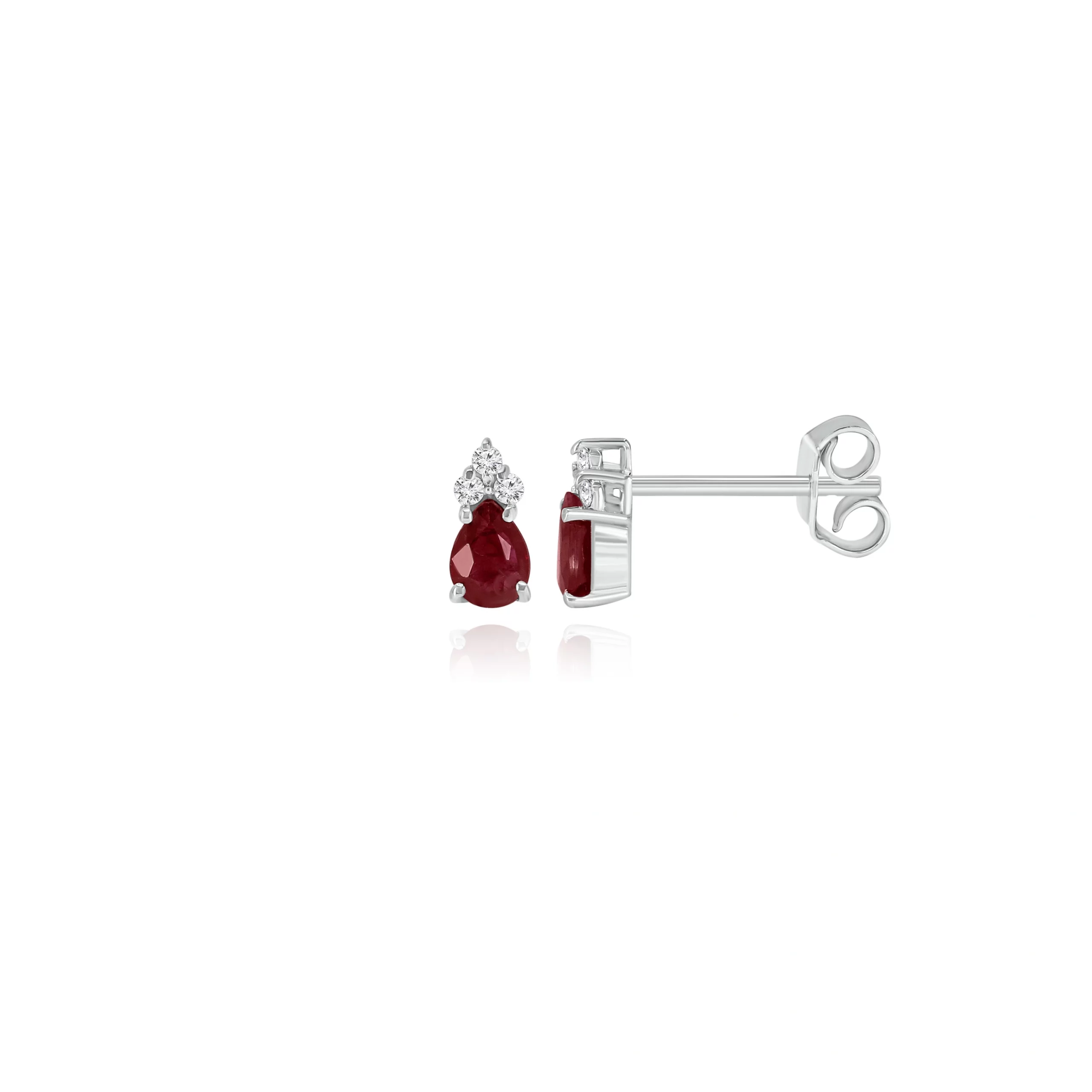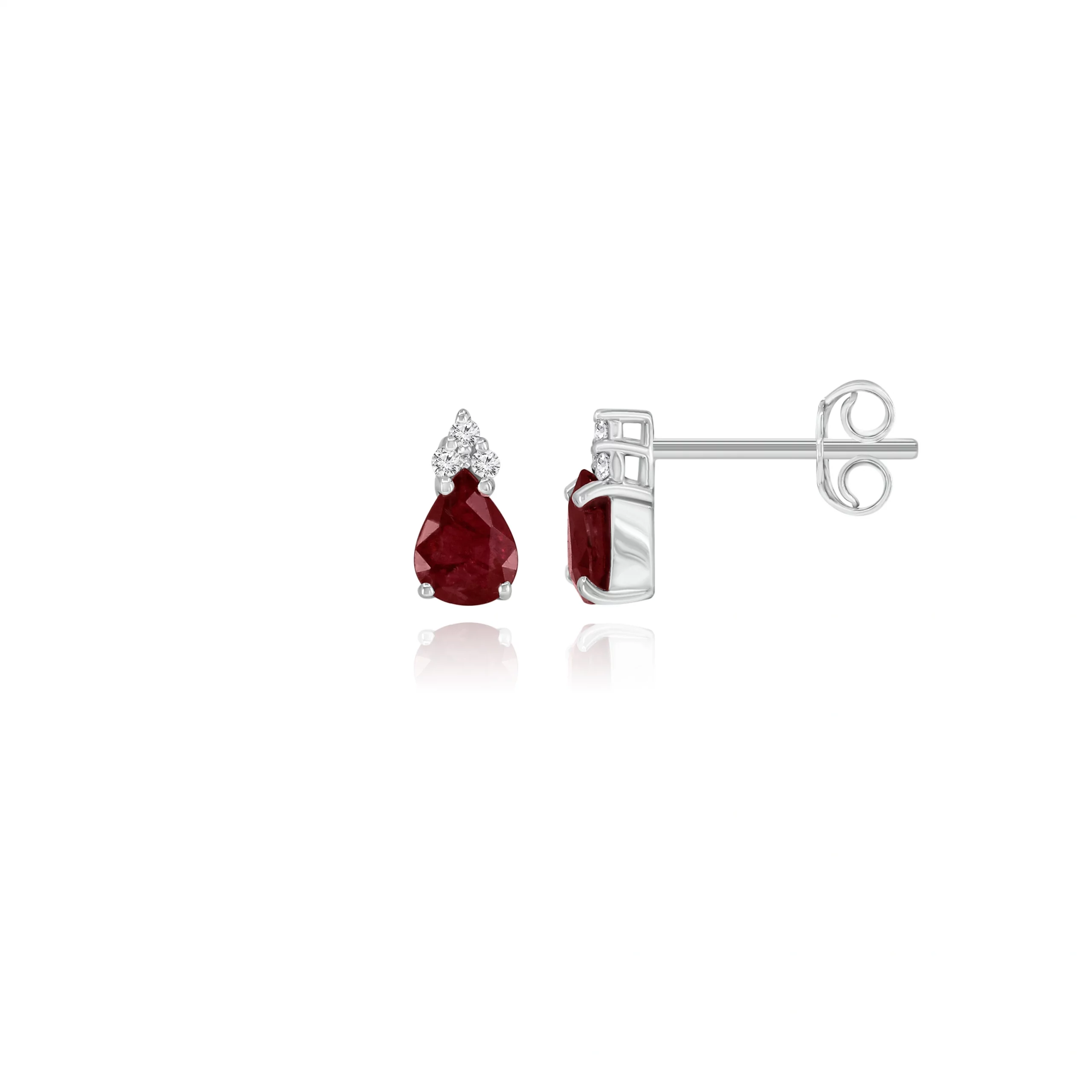 Orecchini con Rubini Taglio Goccia e Diamanti in oro bianco 18 kt, disponibili in diverse carature.