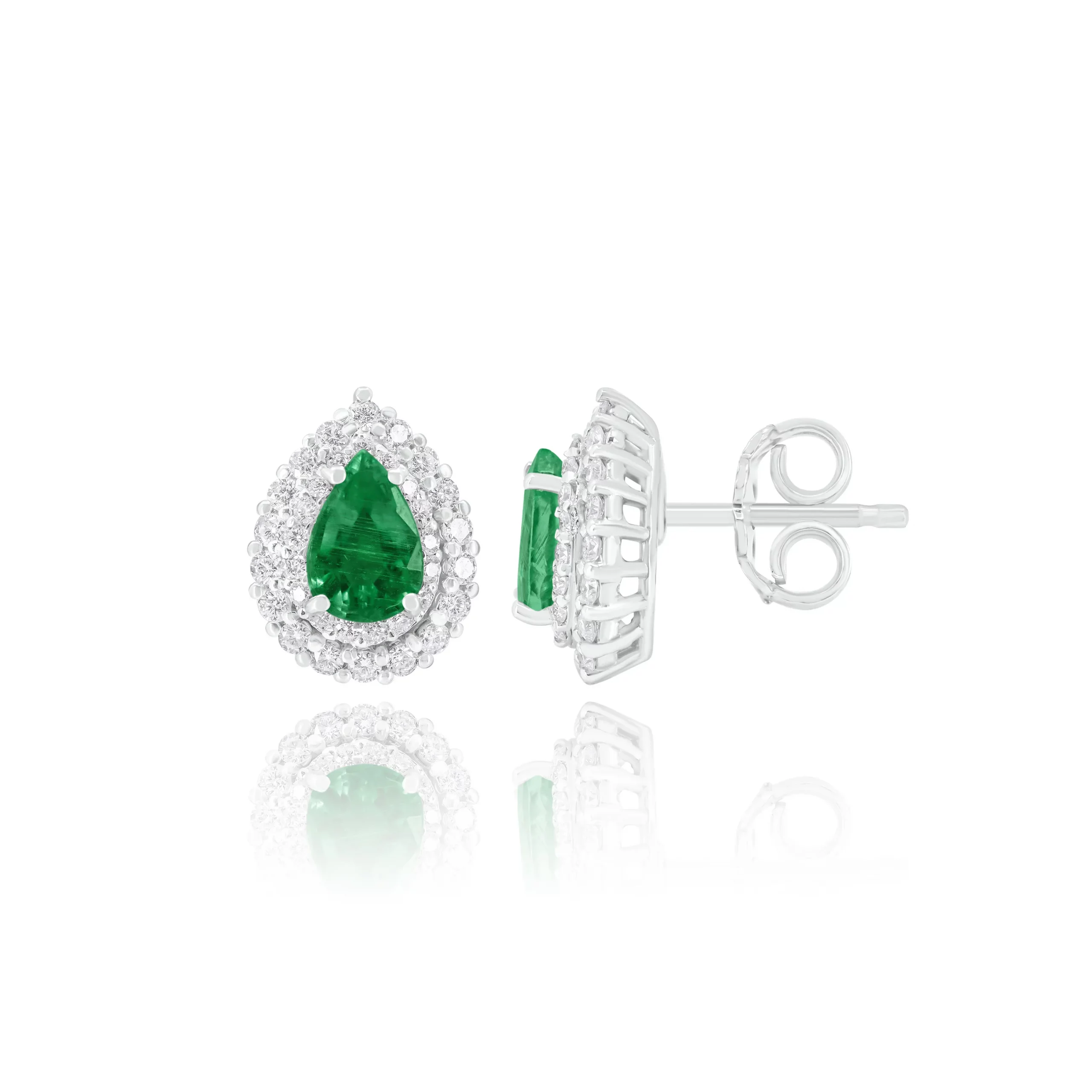 Orecchini Goccia con Smeraldi e Diamanti in oro bianco 18kt, disponibili in diverse carature.