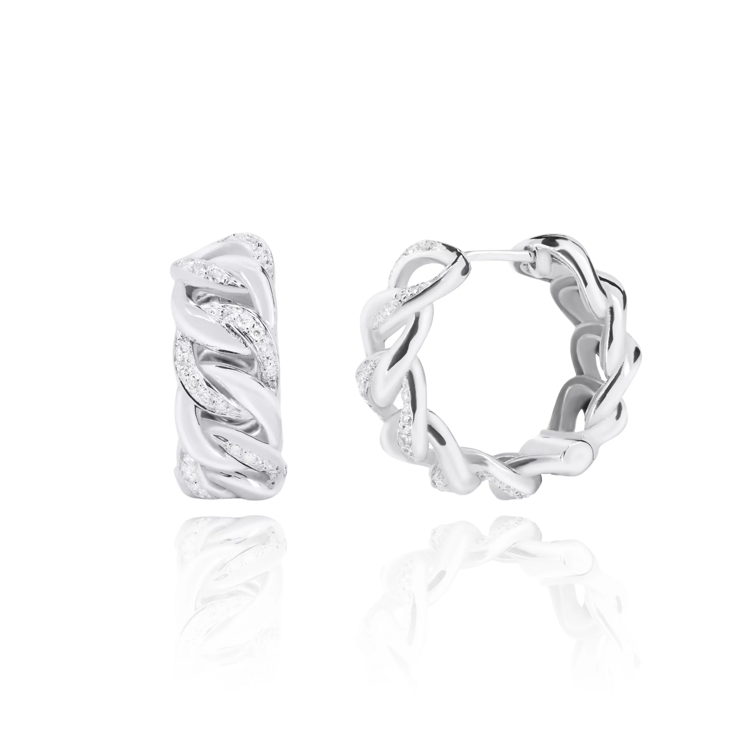 Orecchini Groumette a Cerchio in oro bianco 18kt con Diamanti.