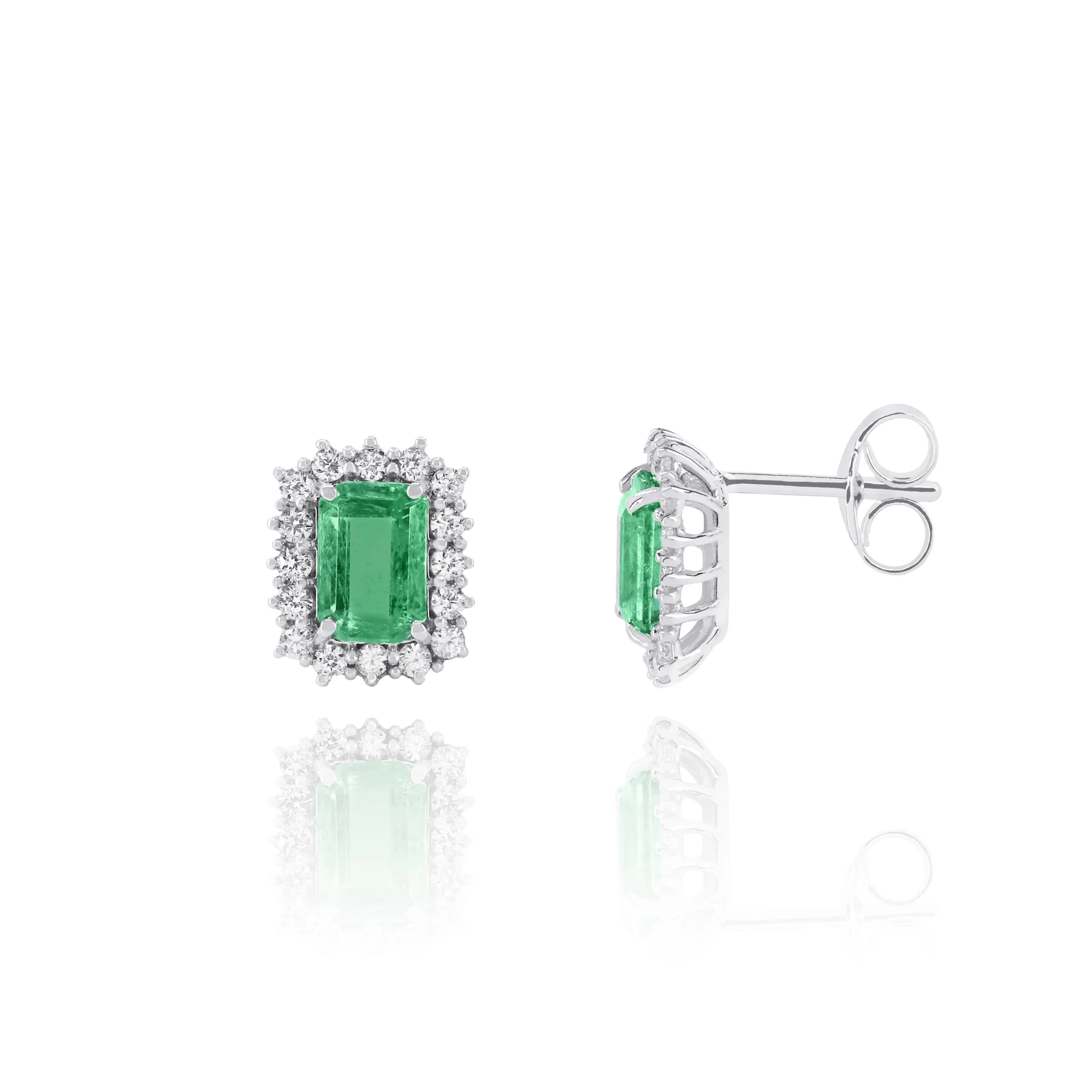 Orecchini Ottagonali con Smeraldi Zambia e Diamanti in oro bianco 18kt:
