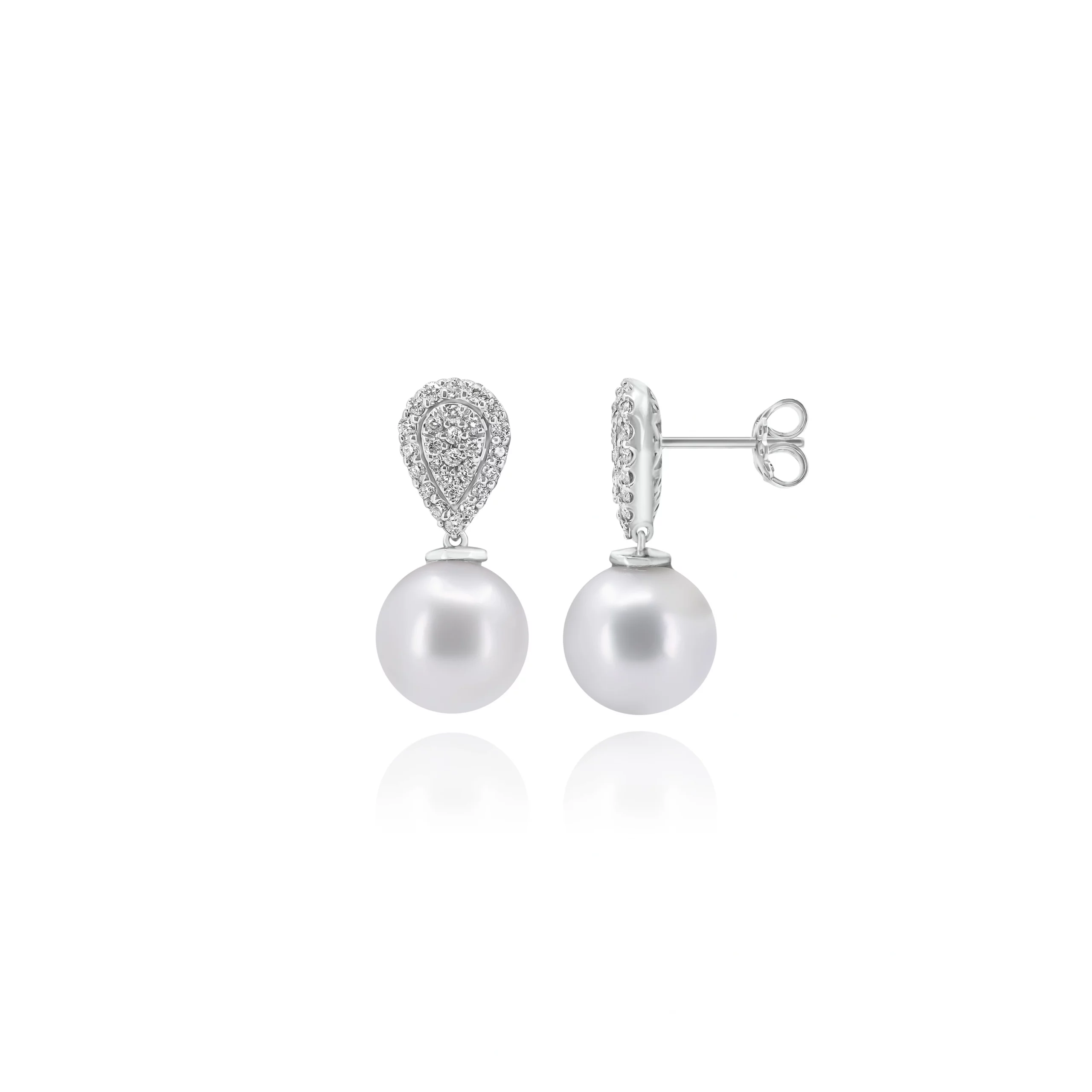 Orecchini con Perle Australiane e Diamanti in oro bianco 18kt.