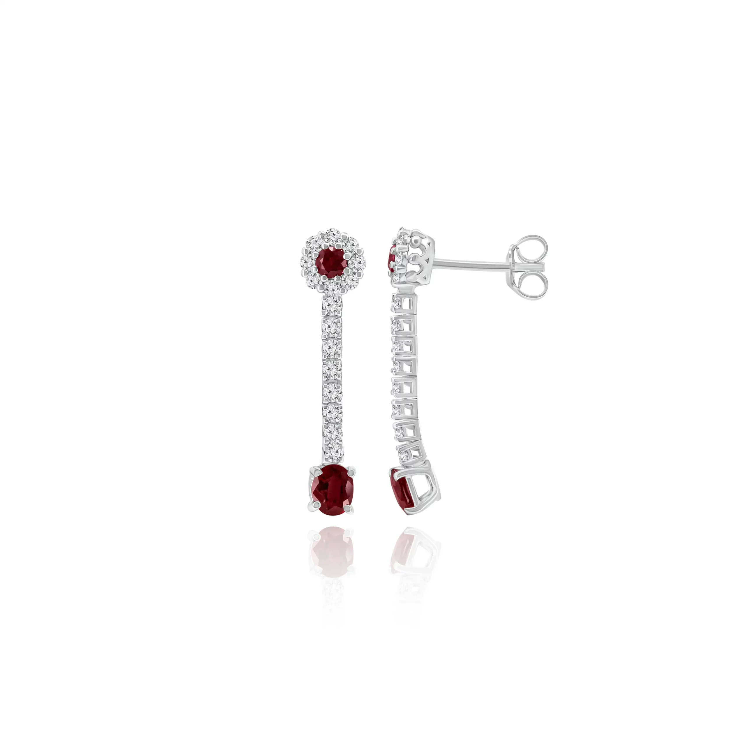 Orecchini Tennis con Rubini e Diamanti in oro bianco 18 kt:
