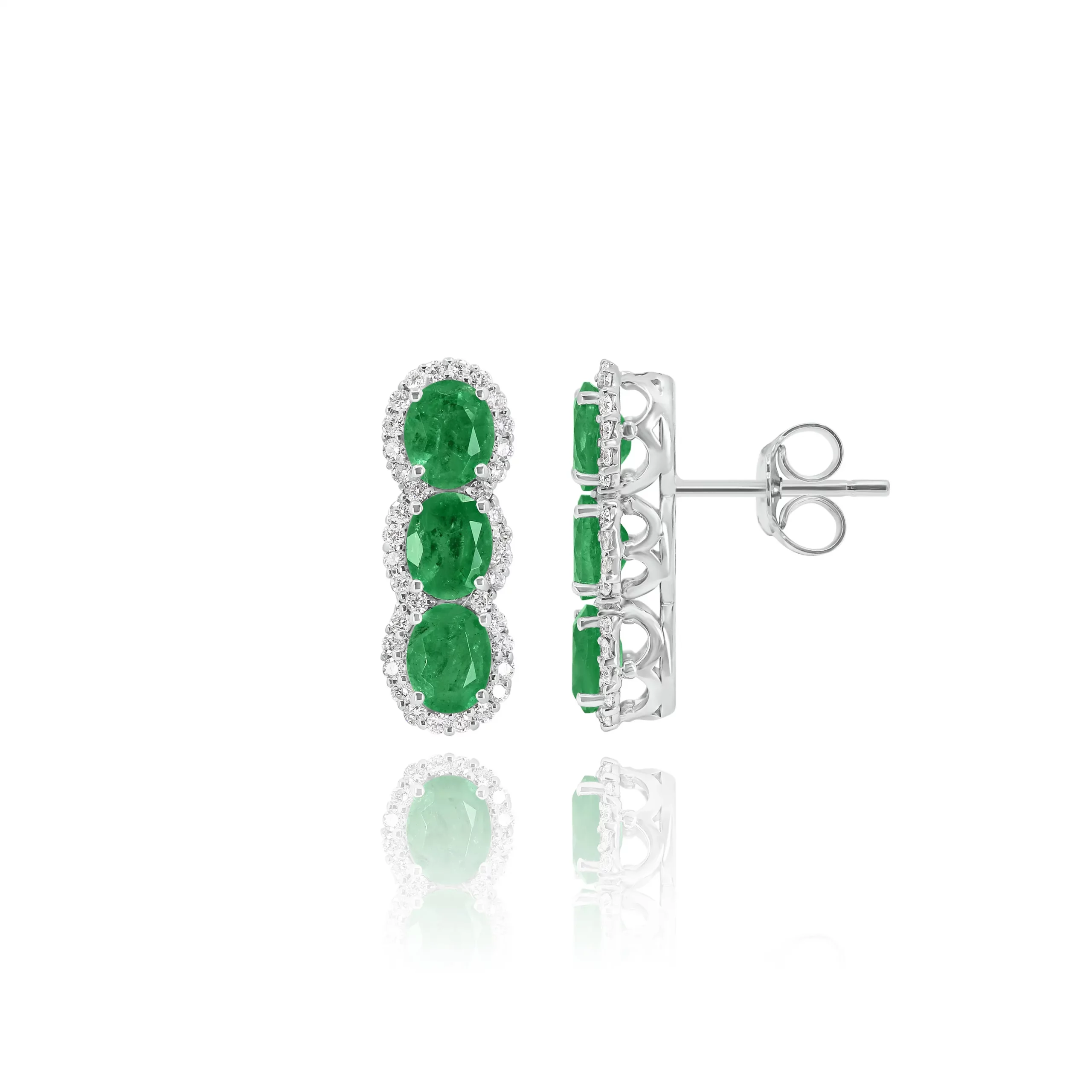 Orecchini Trilogy con Smeraldi e Diamanti in oro bianco 18 kt, appartenenti all’esclusiva Collezione IGDC.