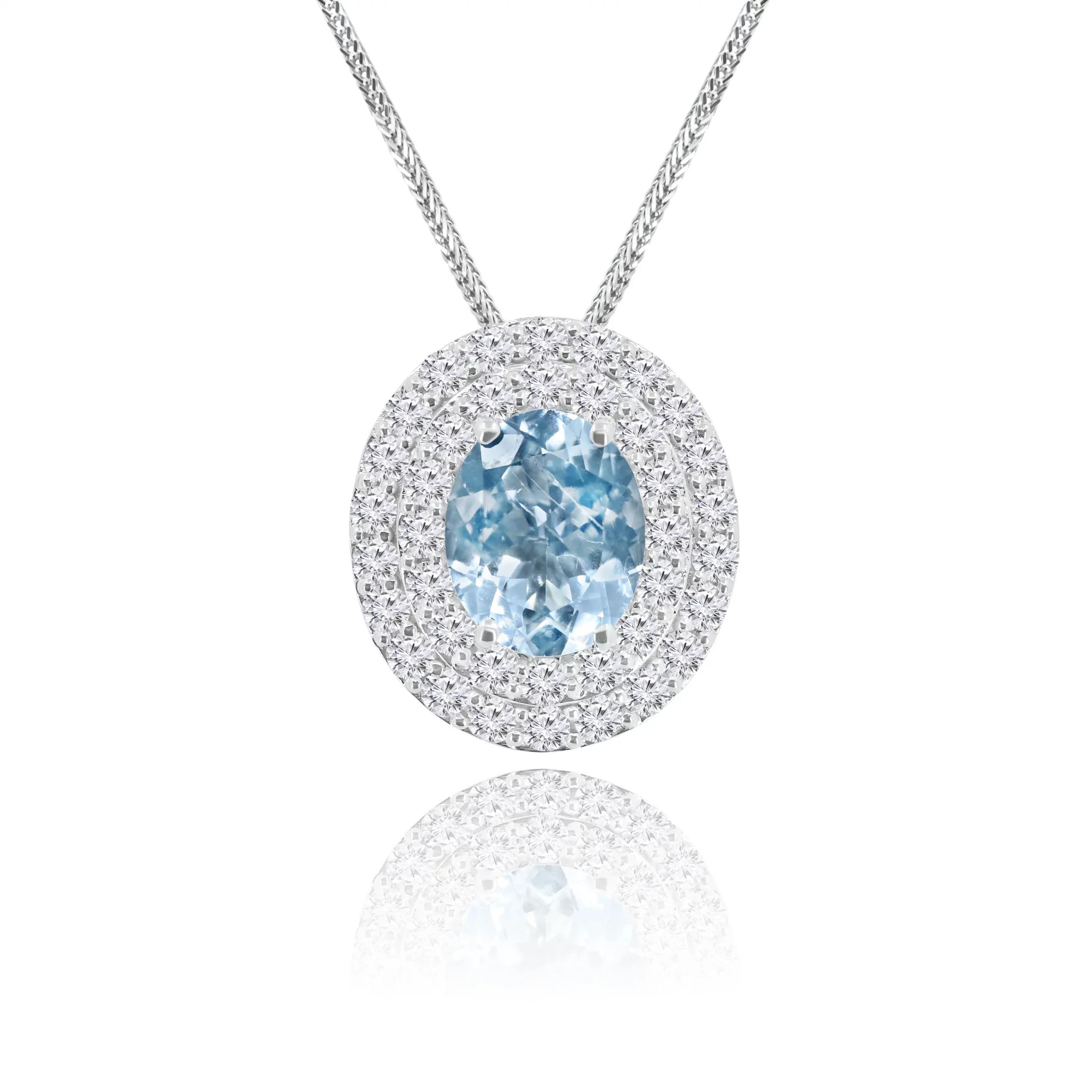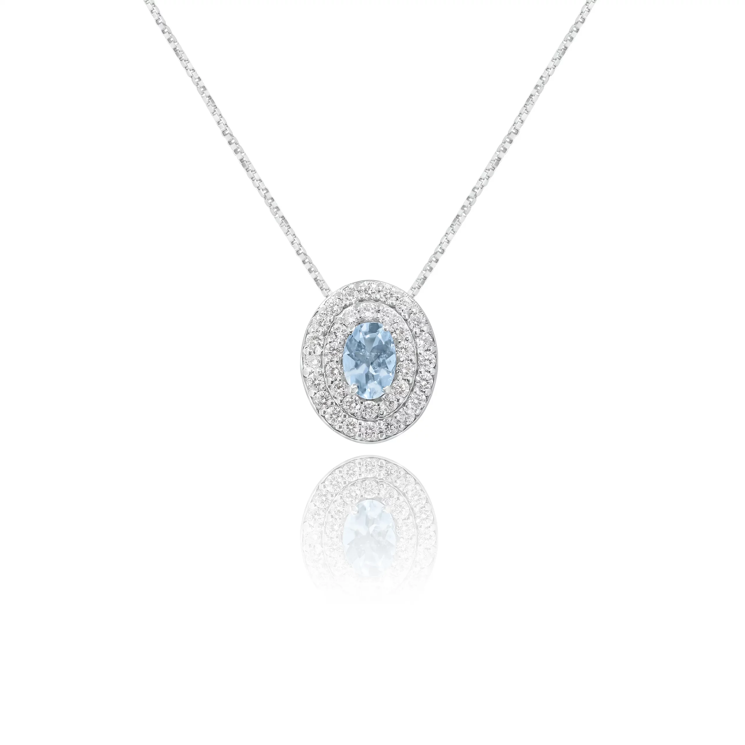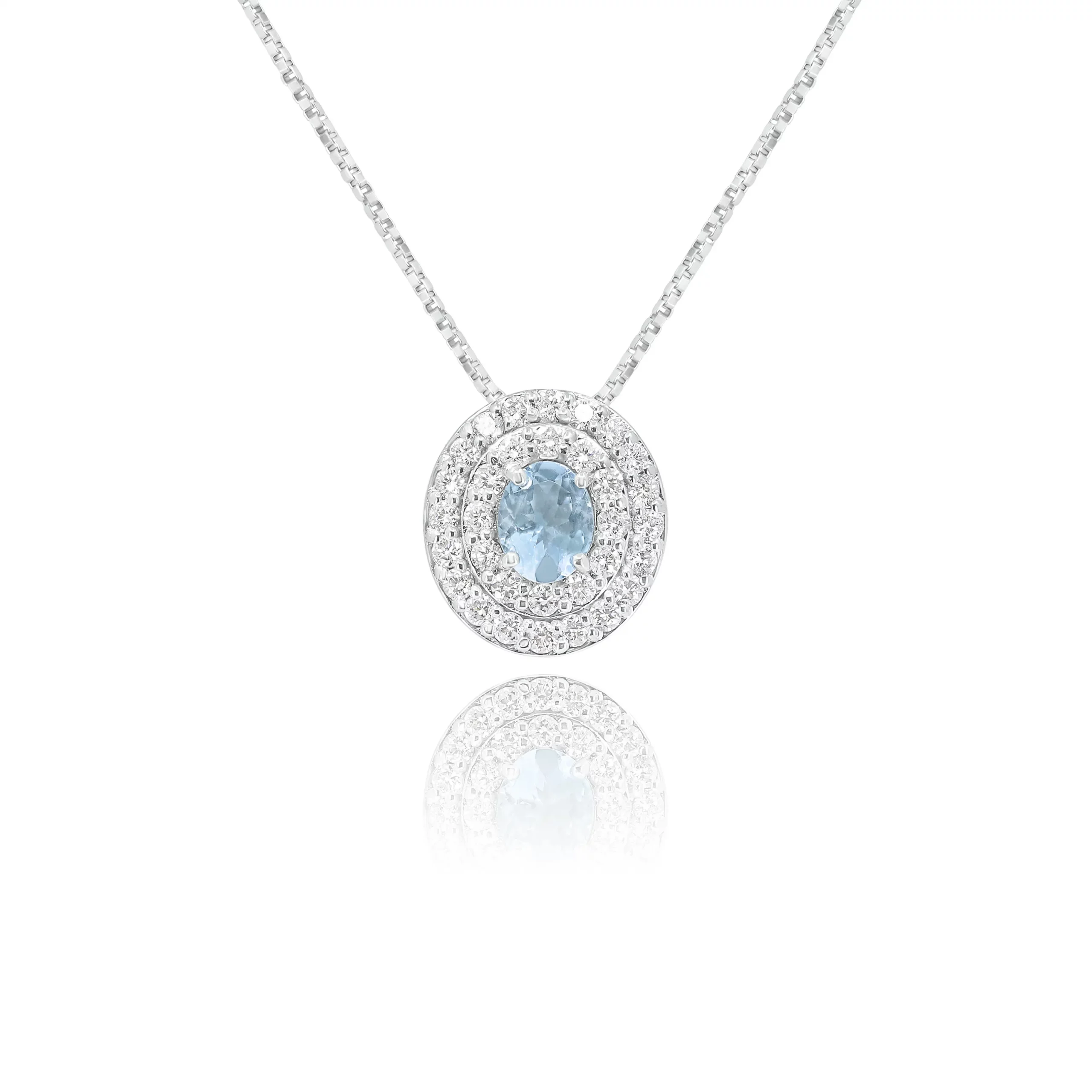 Pendente con Acquamarina e Diamanti in oro bianco 18 kt, Appartenente all’esclusiva collezione IGDC, disponibile in diverse carature: