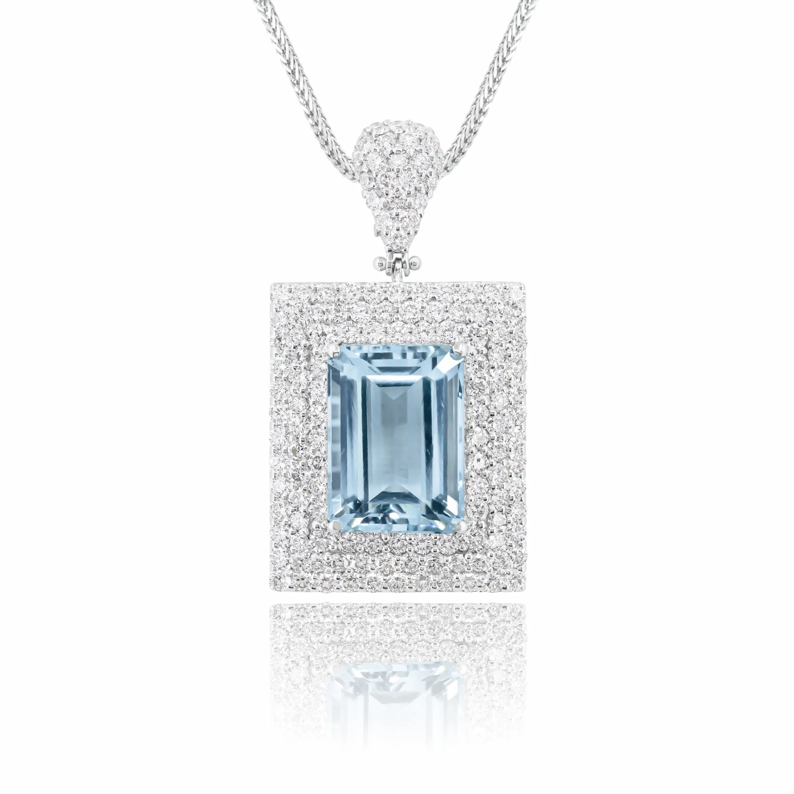 Pendente con Acquamarina e Diamanti in oro bianco 18 kt, appartenente all’esclusiva collezione IGDC.