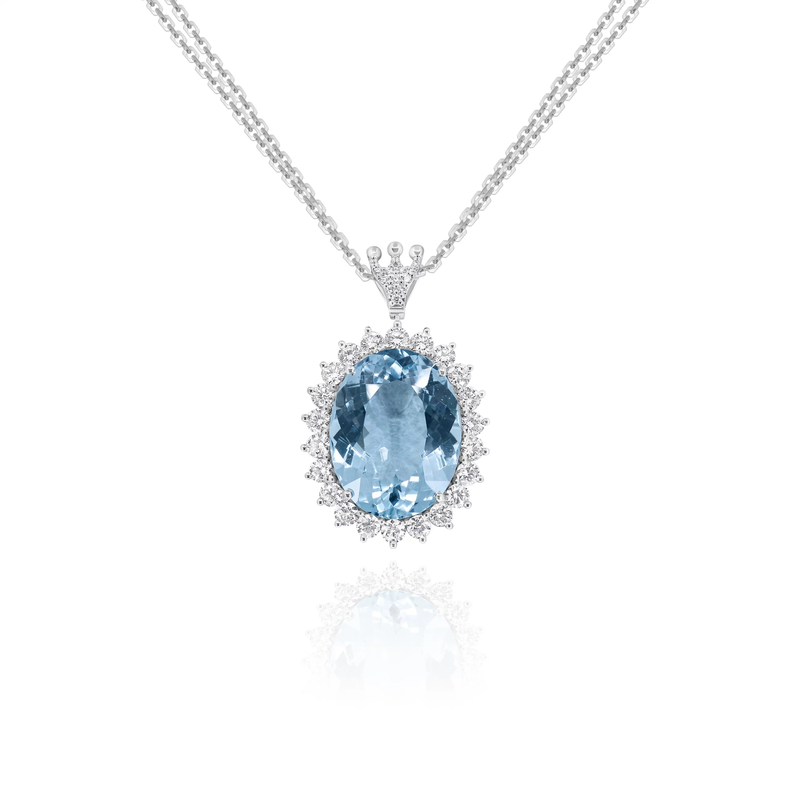 Pendente con Acquamarina e Diamanti in oro bianco 18kt.