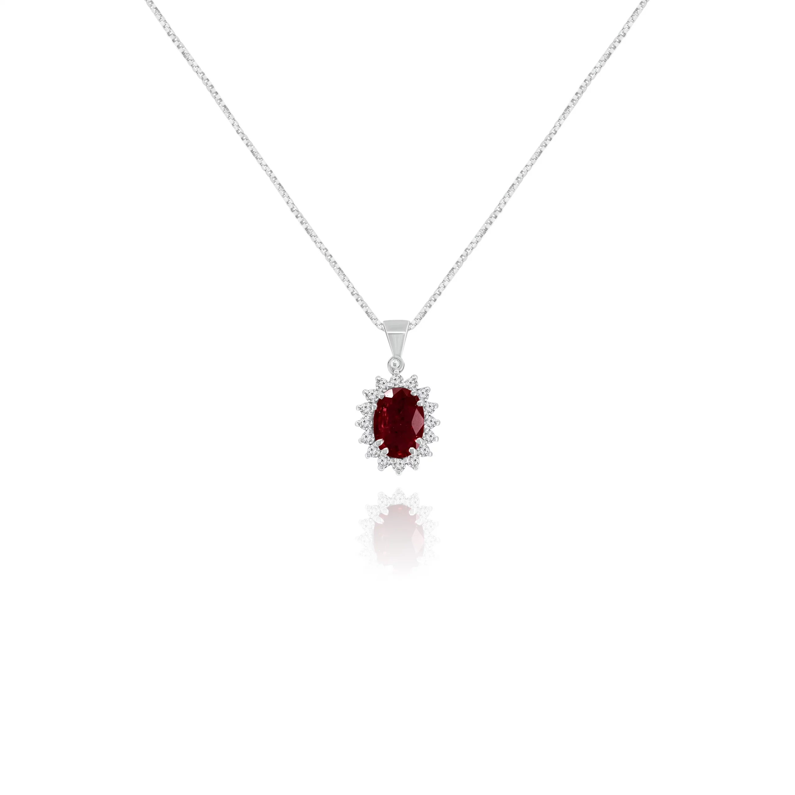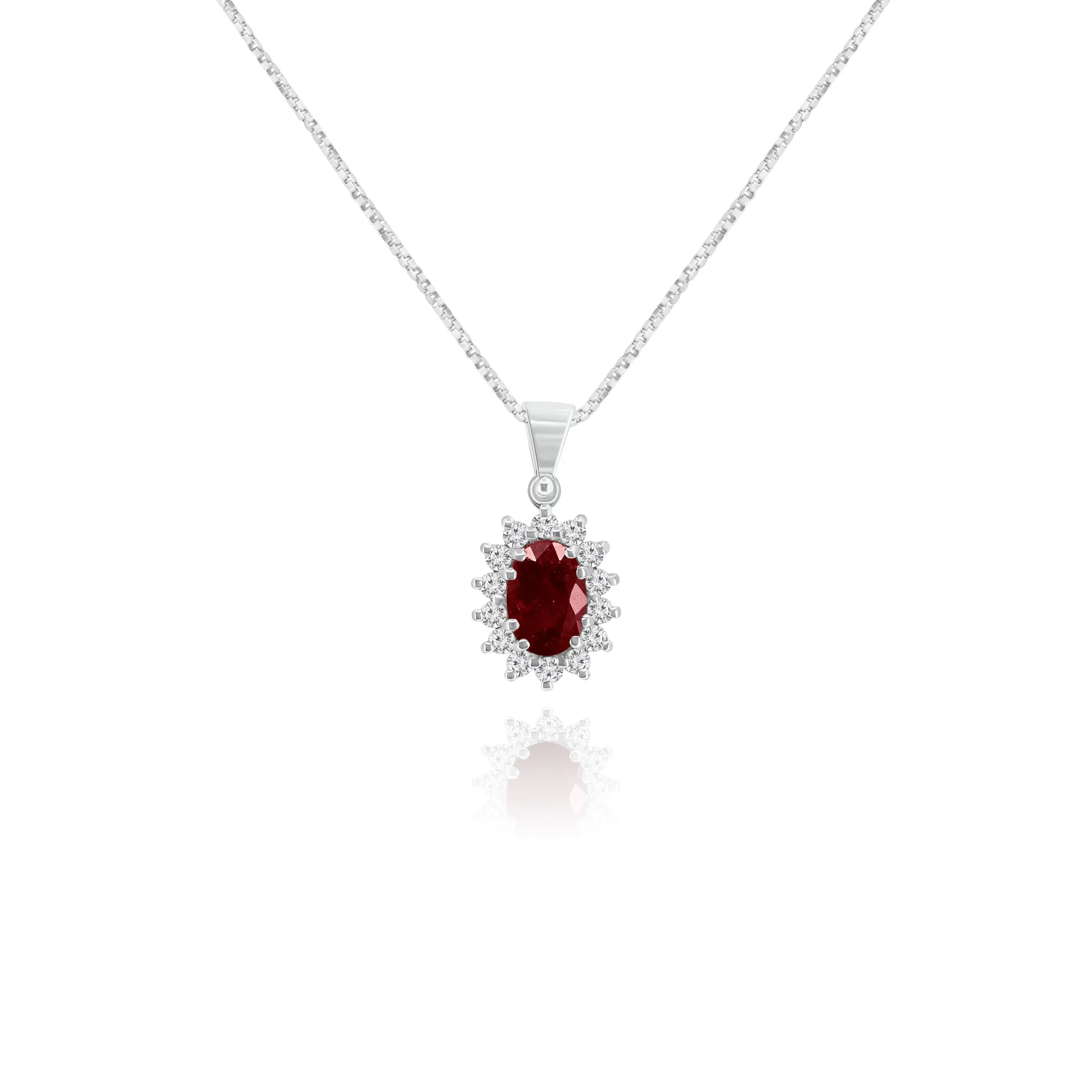 Pendente con Rubino e Diamanti in oro bianco 18 kt, disponibile in diverse carature: