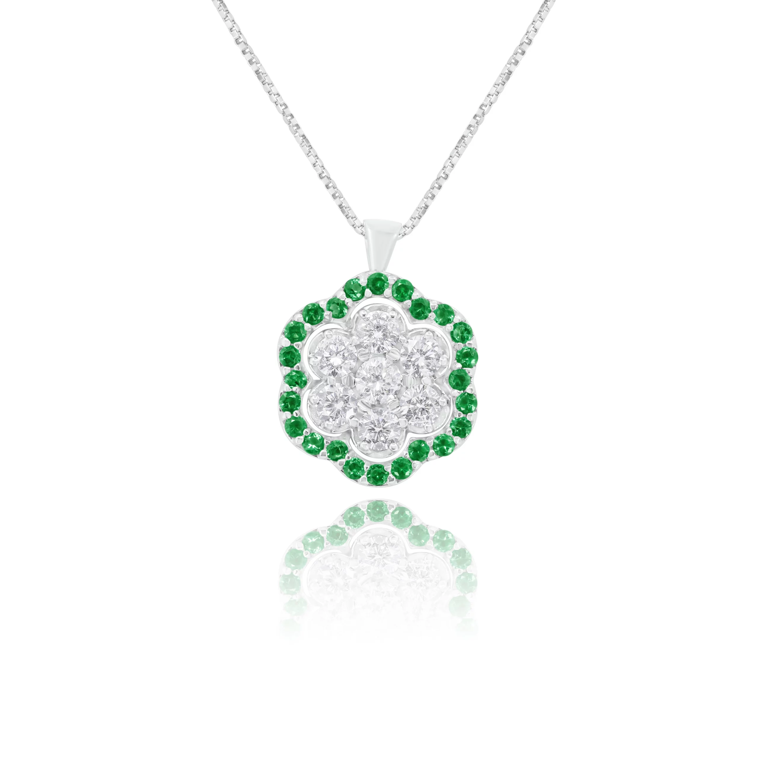 Pendente con Smeraldi e Diamanti in oro bianco 18 kt: