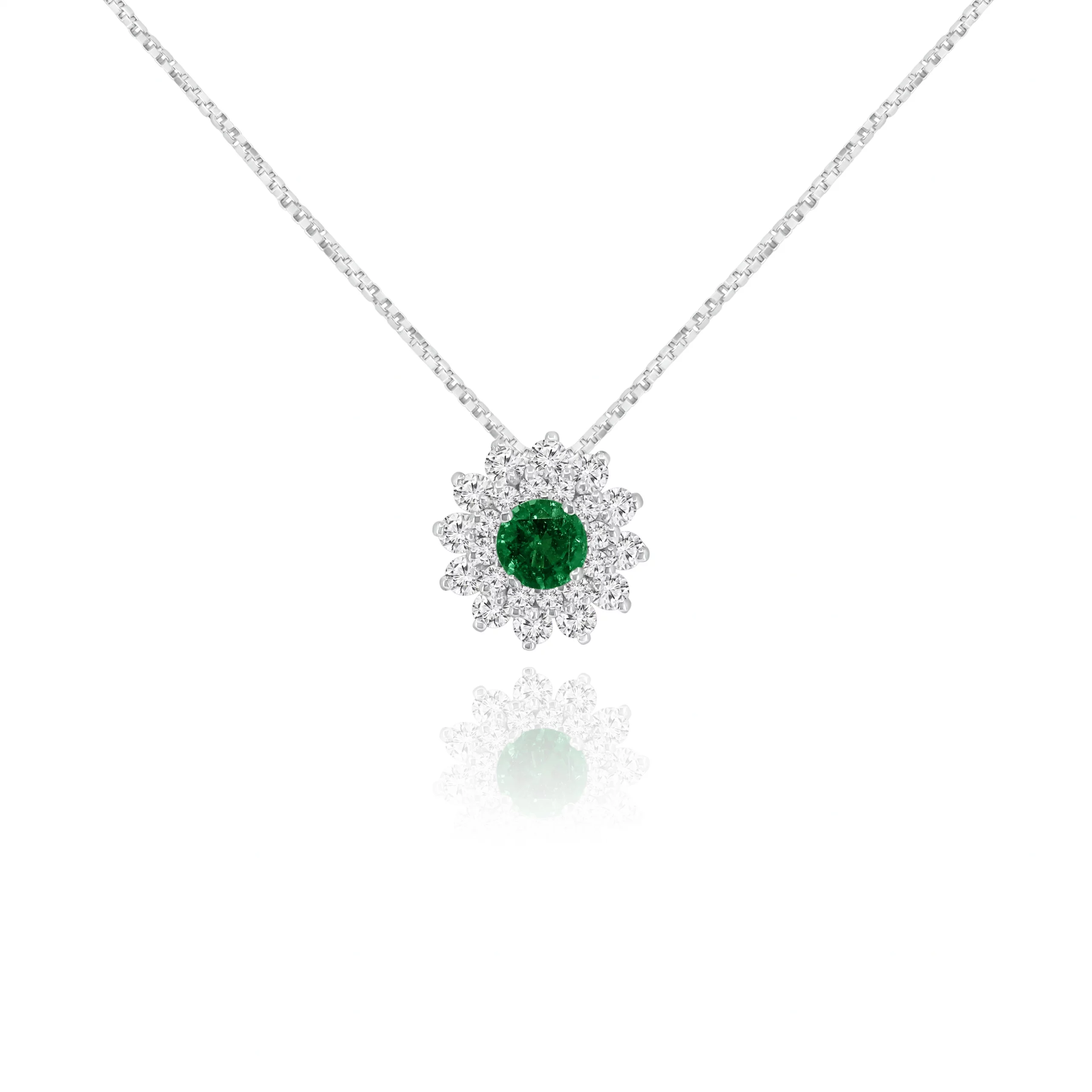 Pendente con Smeraldo e Damanti in oro bianco 18 kt: