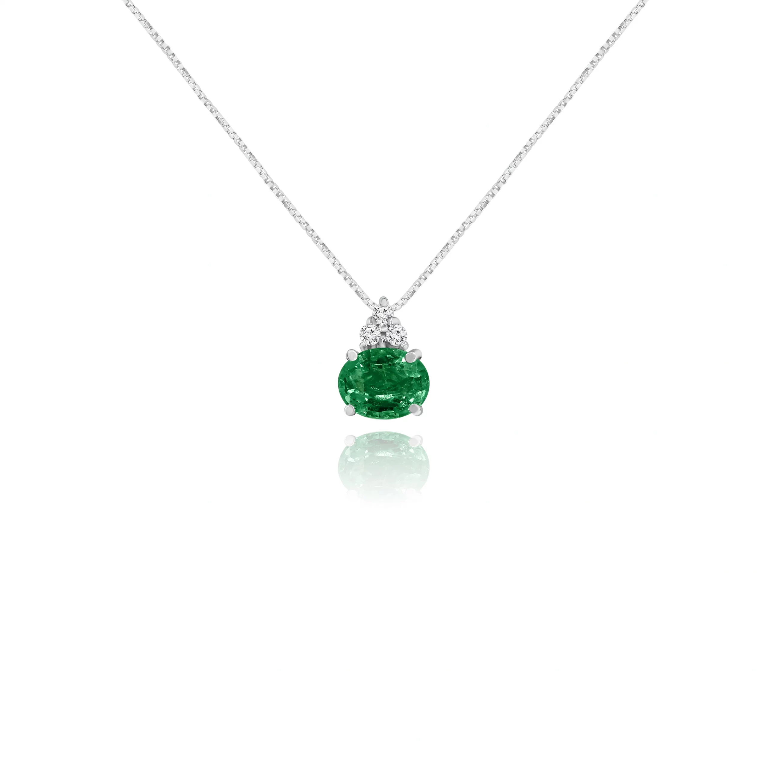 Pendente con Smeraldo e Damanti in oro bianco 18 kt: