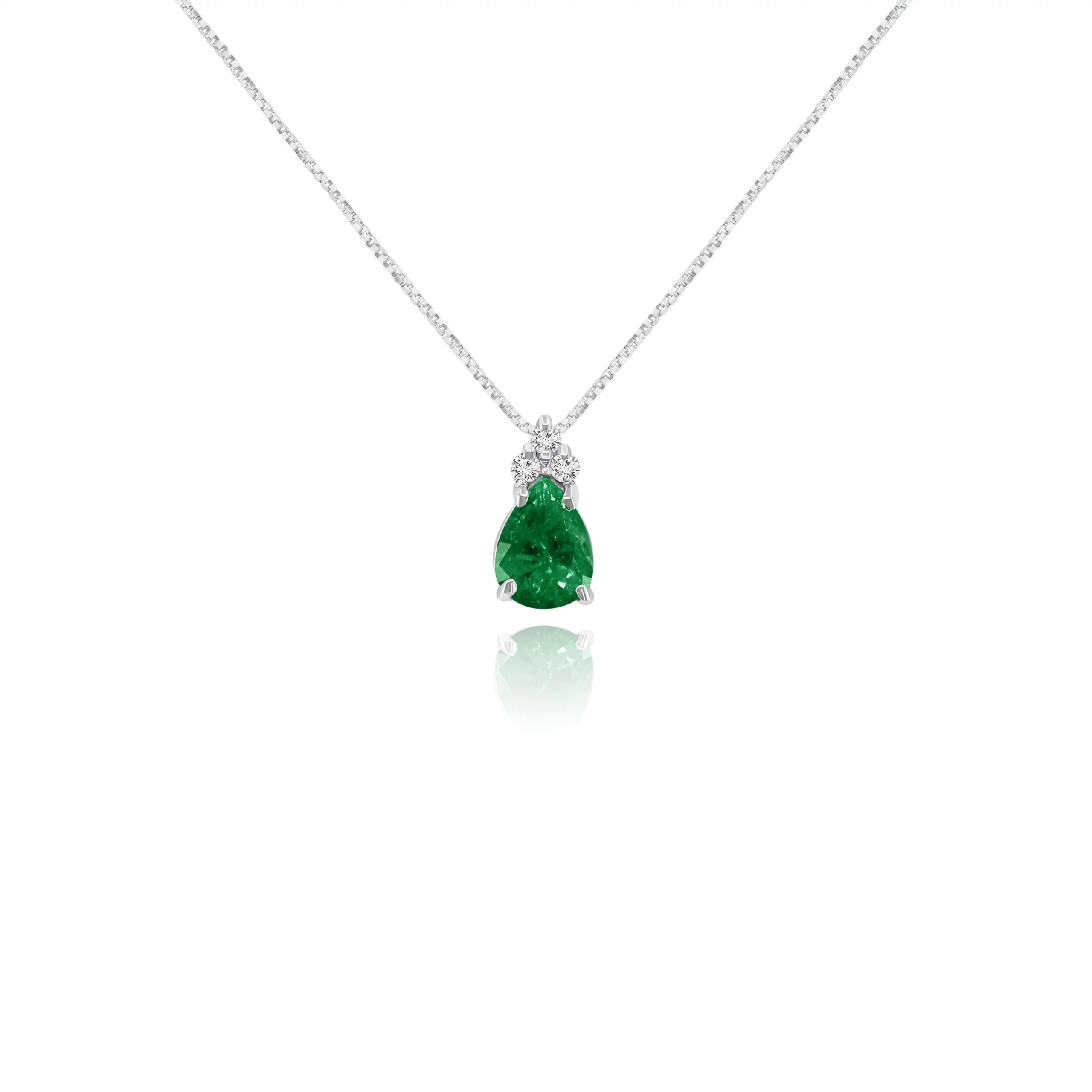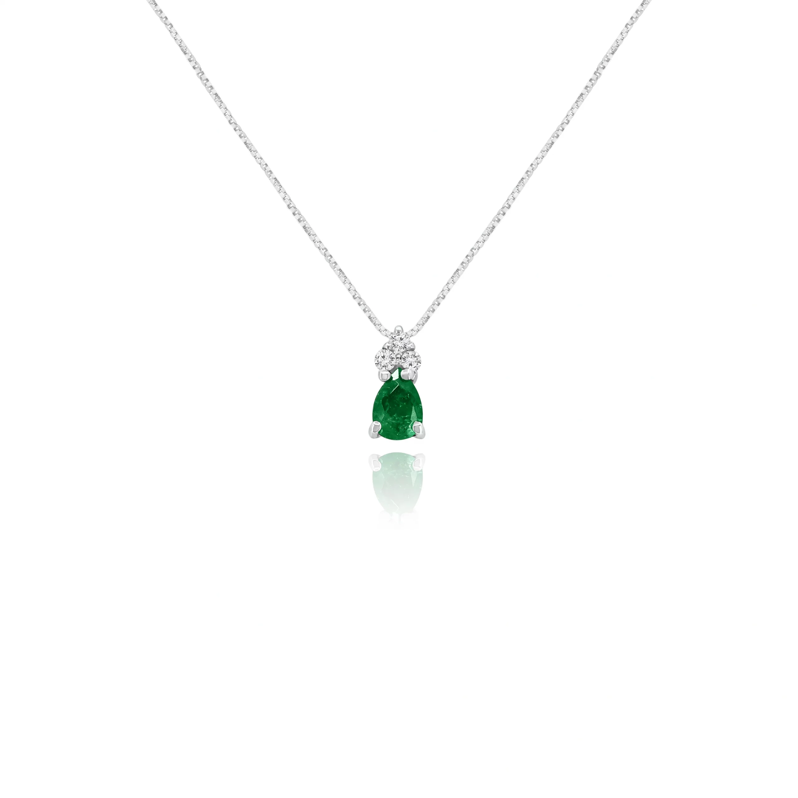 Pendente con Smeraldo Goccia e Diamanti in oro bianco 18 kt, disponibile in diverse carature.
