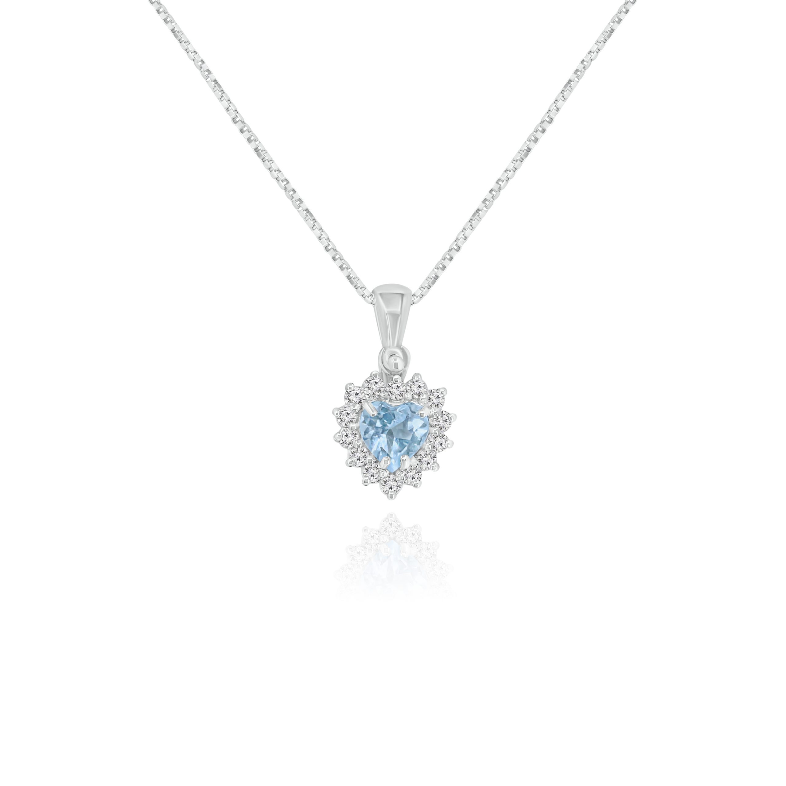 Pendente con Topazio Azzurro e Diamanti in oro bianco 18 kt: