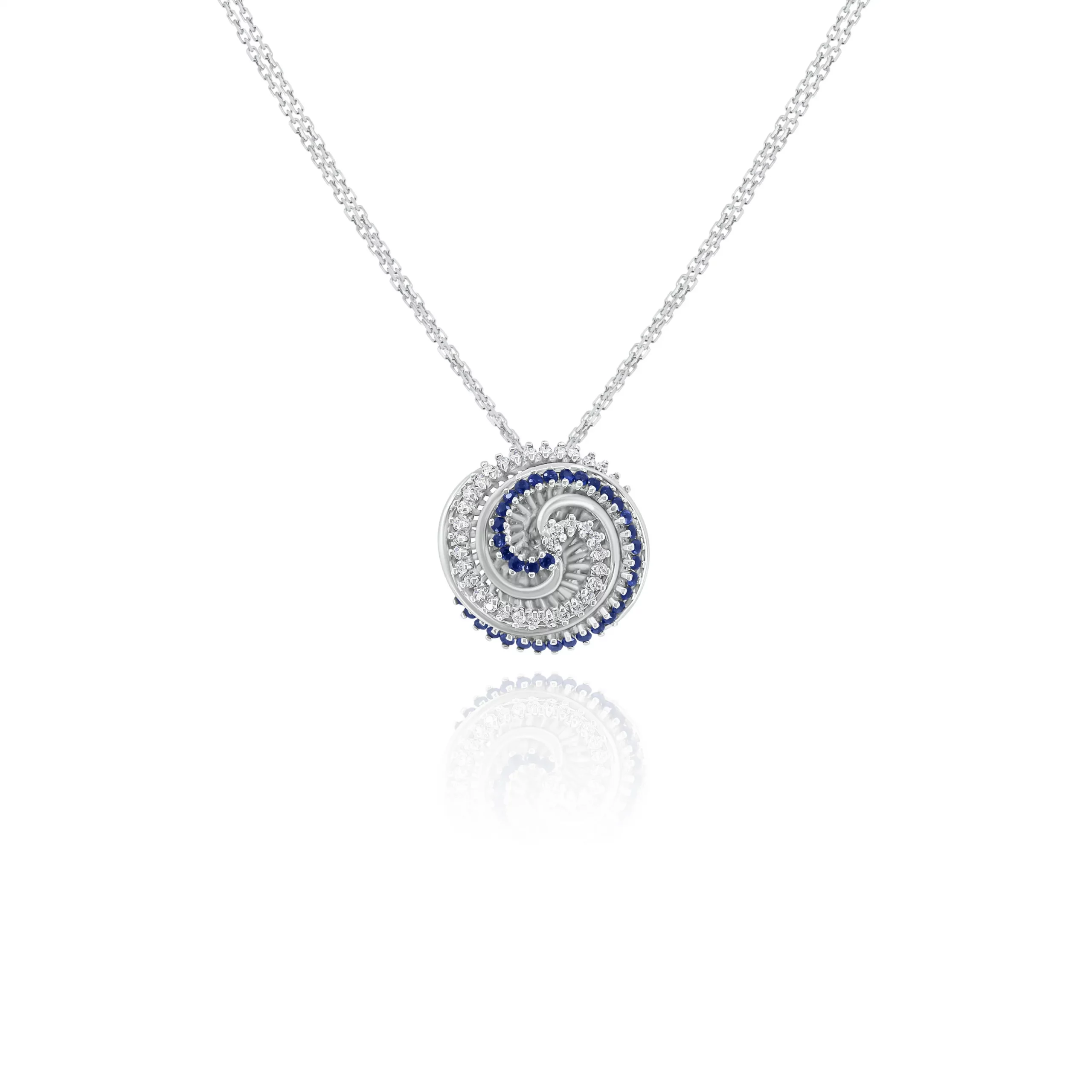 Pendente con Zaffiri e Diamanti in oro bianco 18 kt: