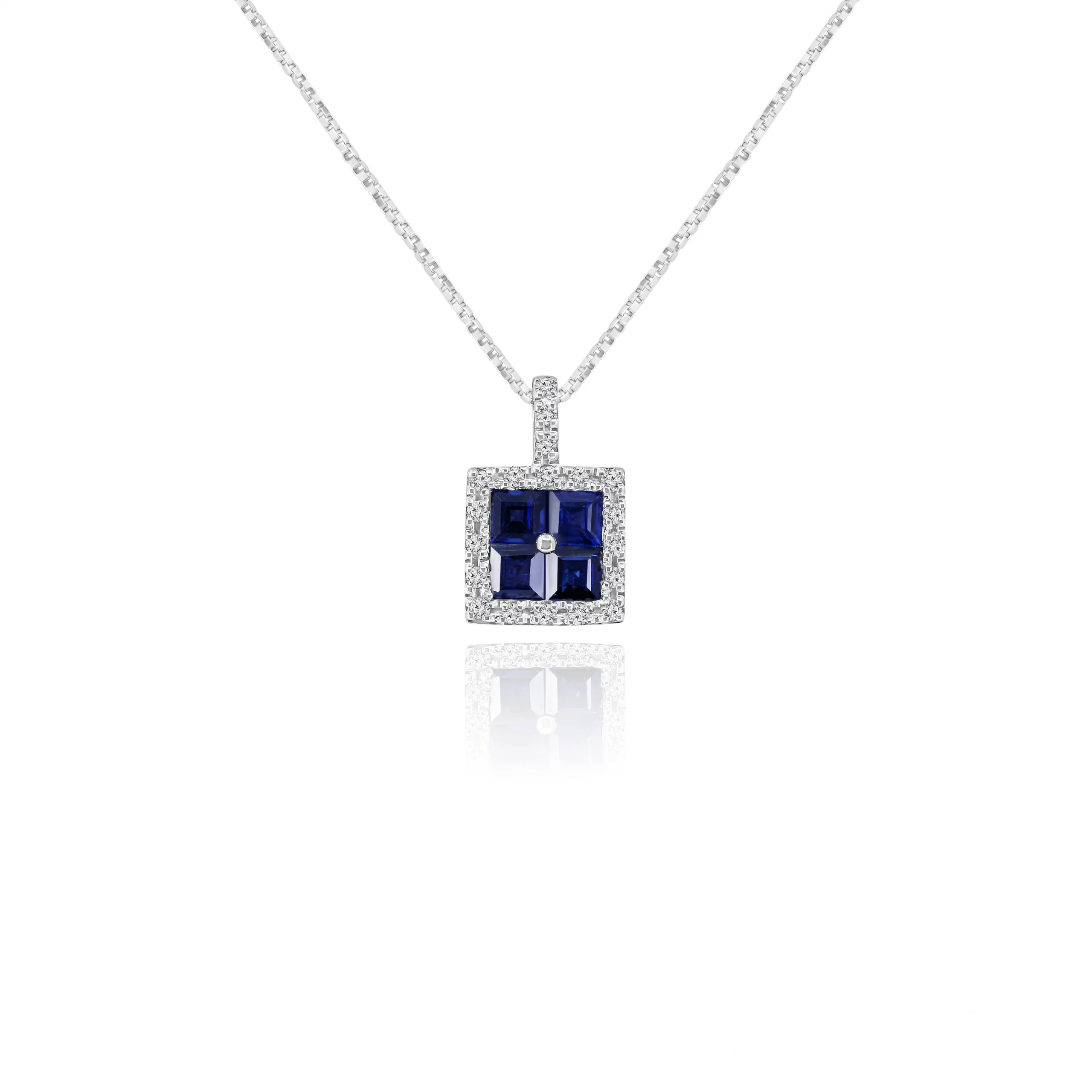 Pendente con Zaffiro e Diamanti in oro bianco 18 kt.