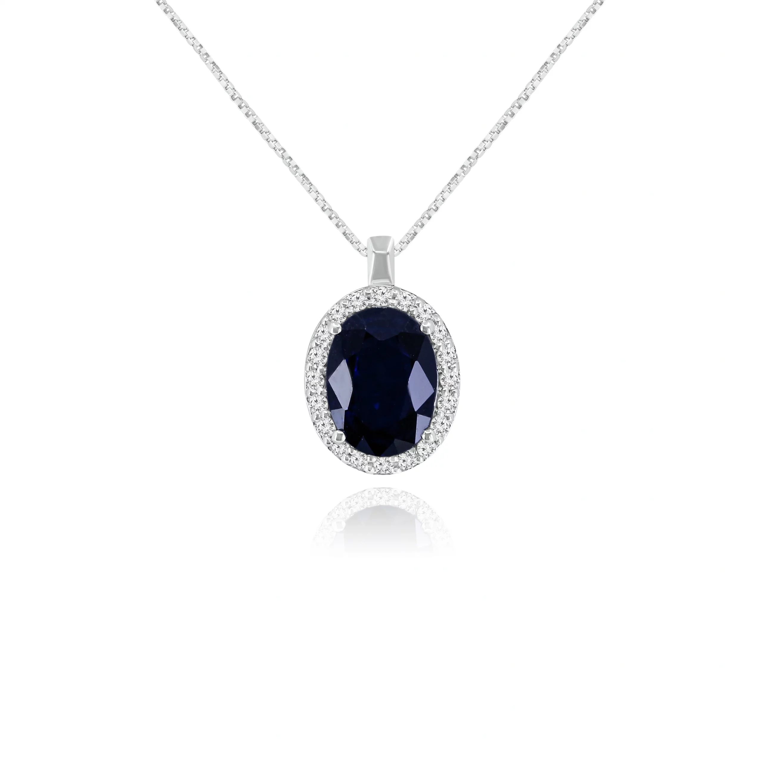 Pendente con Zaffiro e Diamanti in oro bianco 18 kt: