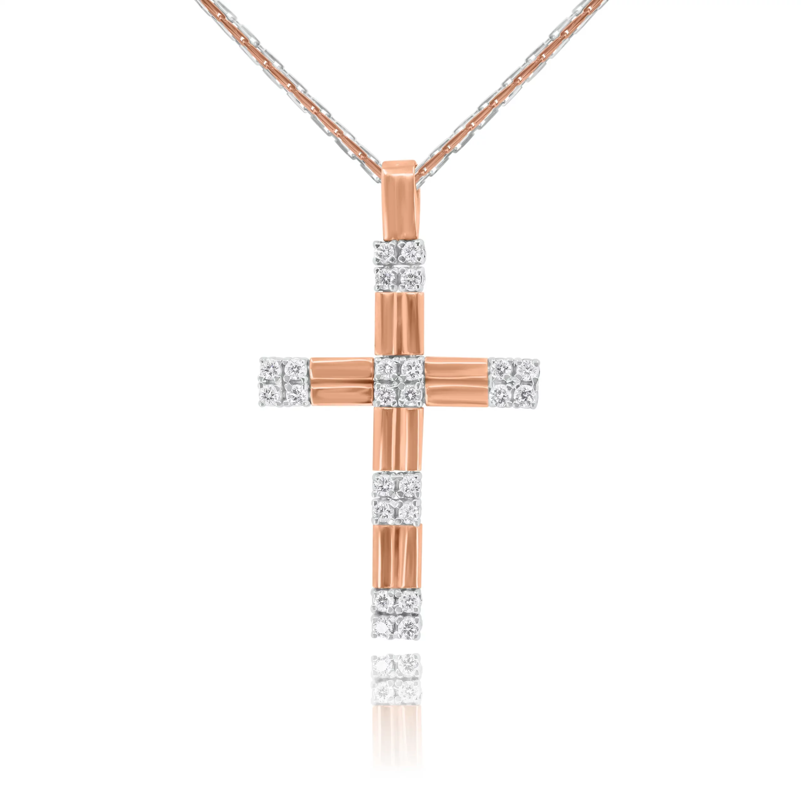 Pendente Croce con Diamanti in oro bianco e oro rosa 18 kt: