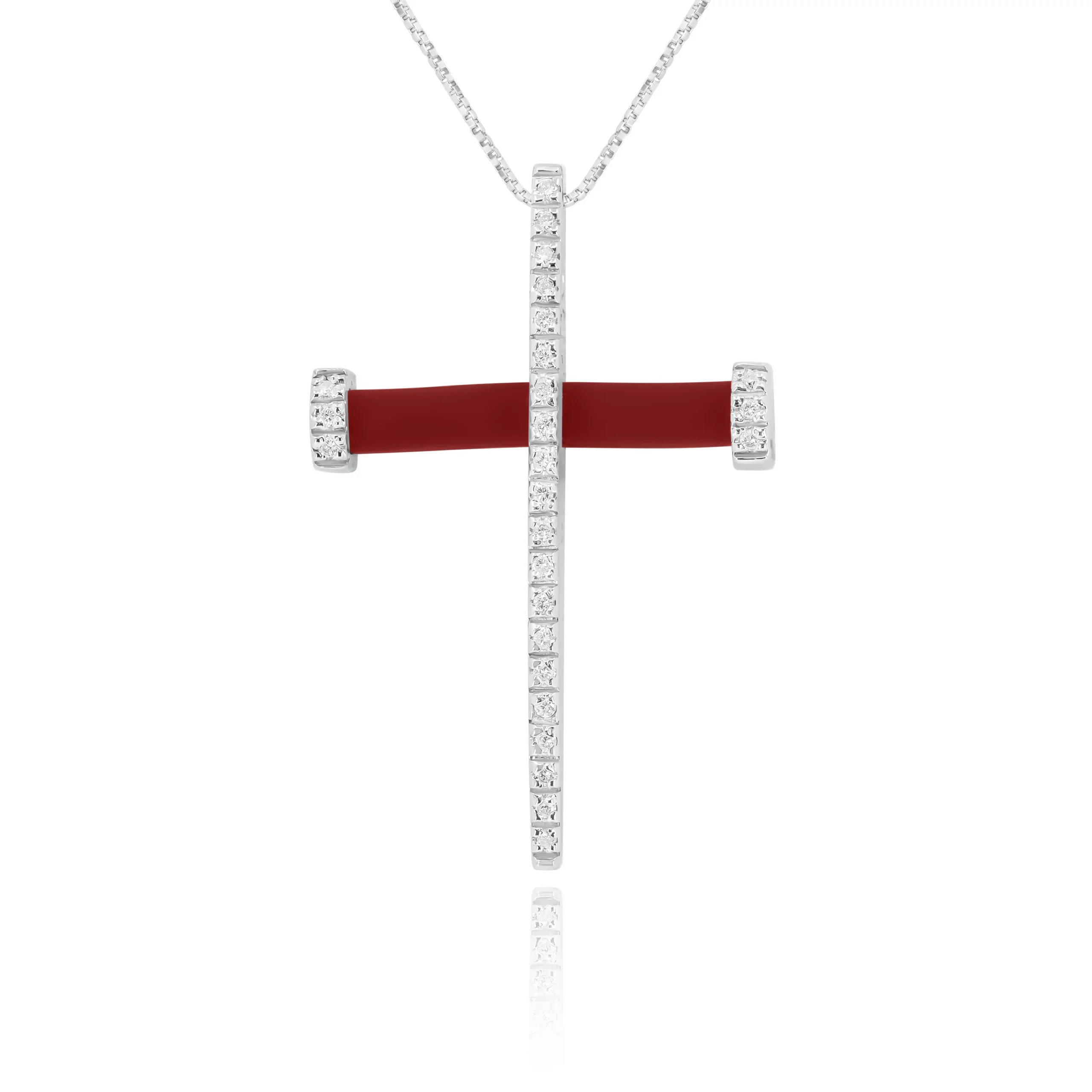 Pendente Croce con Caucciù e Diamanti in oro bianco 18 kt: