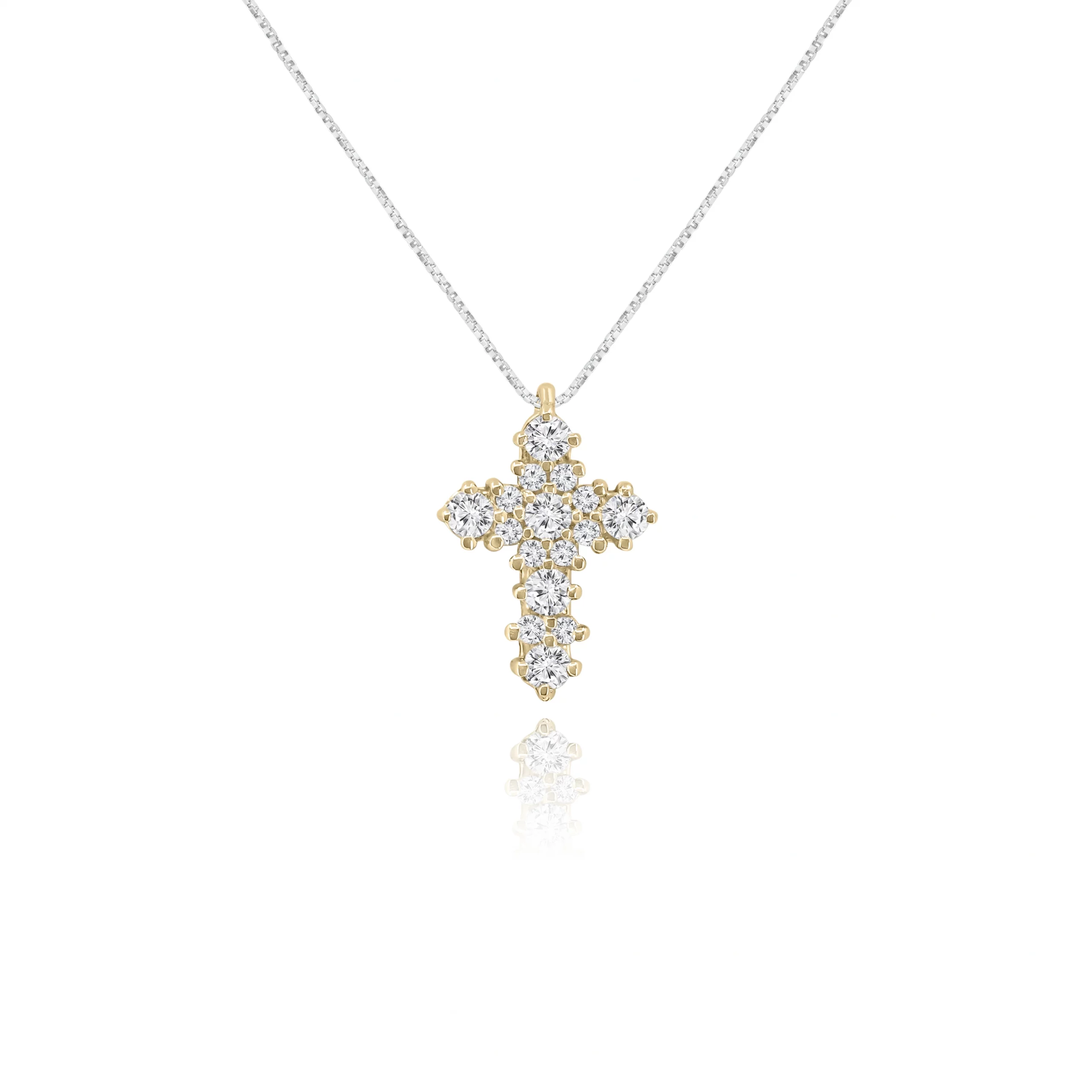 Pendente Croce con Diamanti in oro Giallo e Oro Bianco 18 kt: