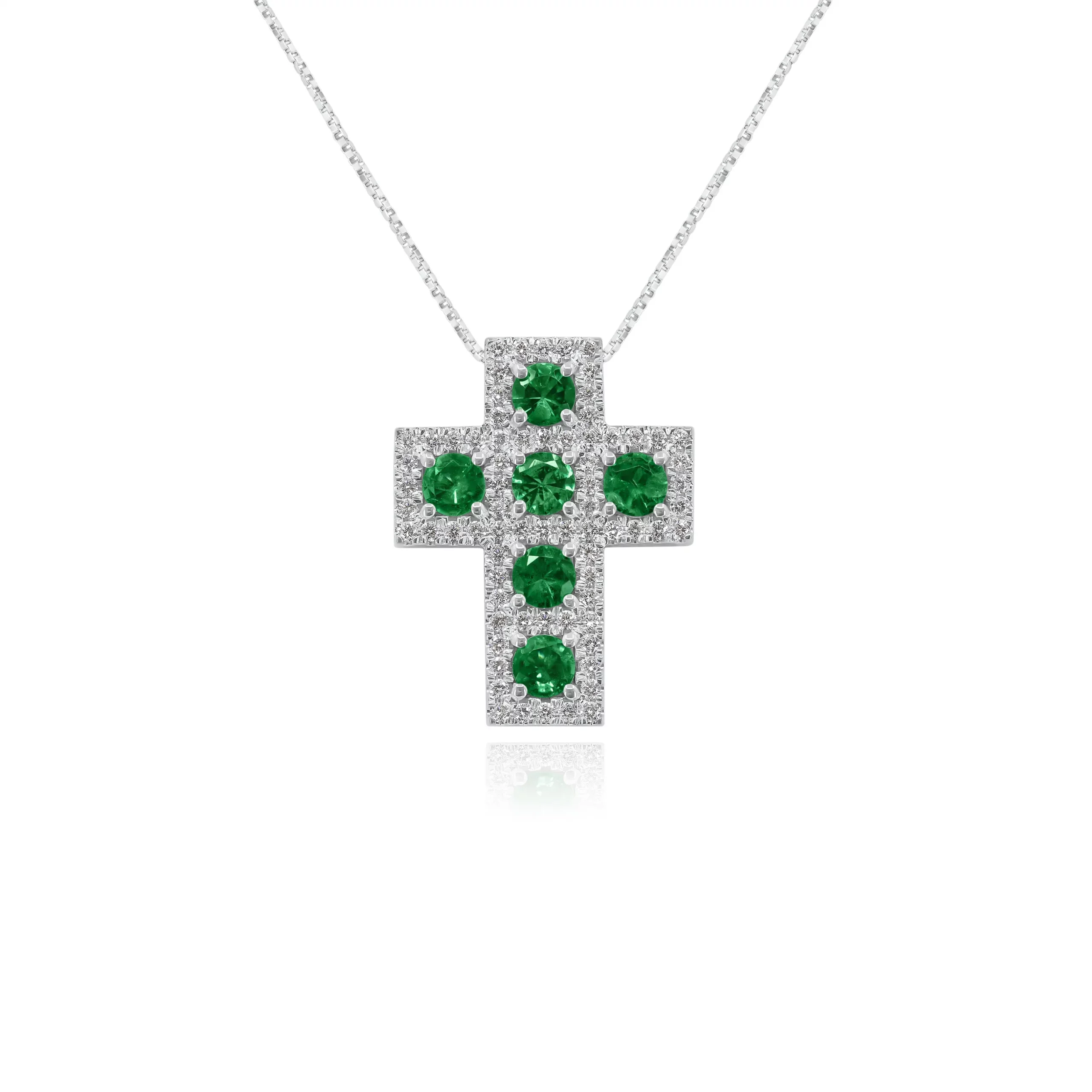 Pendente Croce con Smeraldi e Diamanti in oro bianco 18 kt: